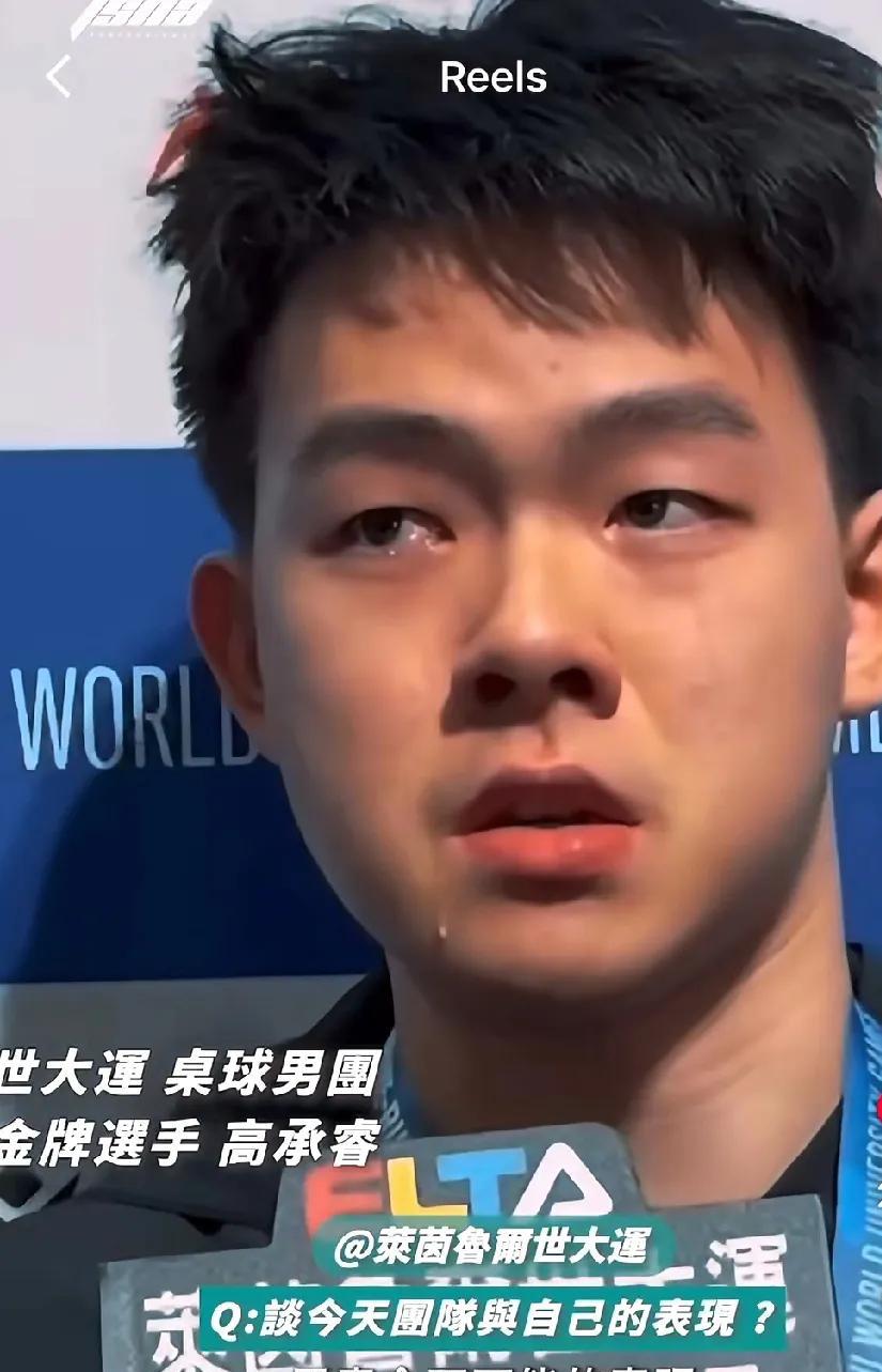 高承睿自责拖累团队泪崩 今天凌晨大运会男团决赛, 中国台北3-2击败7连霸中国, 高承睿却开心不起来, 非常自责采访时泪崩, 几次都哽咽说不下去, 他说自己今天表现很差, 丢了两分拖累了团队, 是团队帮他实现了这个冠军, 高承睿太有责任心, 你已经很棒了, 半决赛对日本一人砍两分, 没有他台北队走不到决赛, 所以不必自责, 责任+拼劲, 一个人倒了另一个扛起来, 大家一起湊3分, 这就是团魂的力量, 这也是我们小将应该学习的地方!