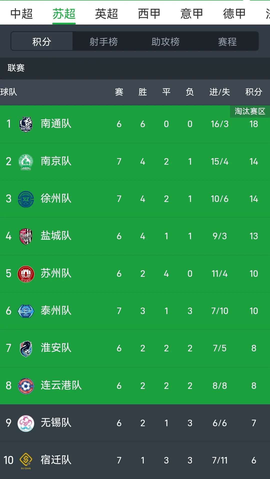 苏超联赛今天结束了第七轮的部分比赛,出现了一支奇怪的队:“八队”? 积分榜排前三的是南通、南京、徐州队,但是第13名却是“八队”,按照以前排名垫底的是常州队,不知道怎么出现了个“八队”了,不知道是什么缘由?