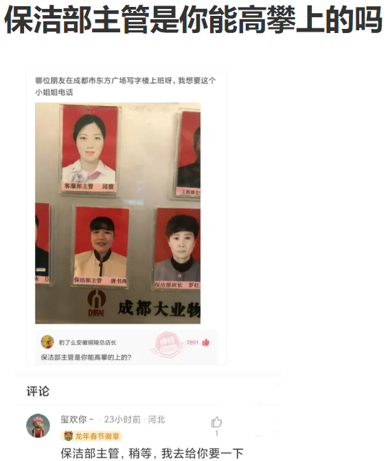 这回答故意的吧?人家明明说的是保洁部班长!