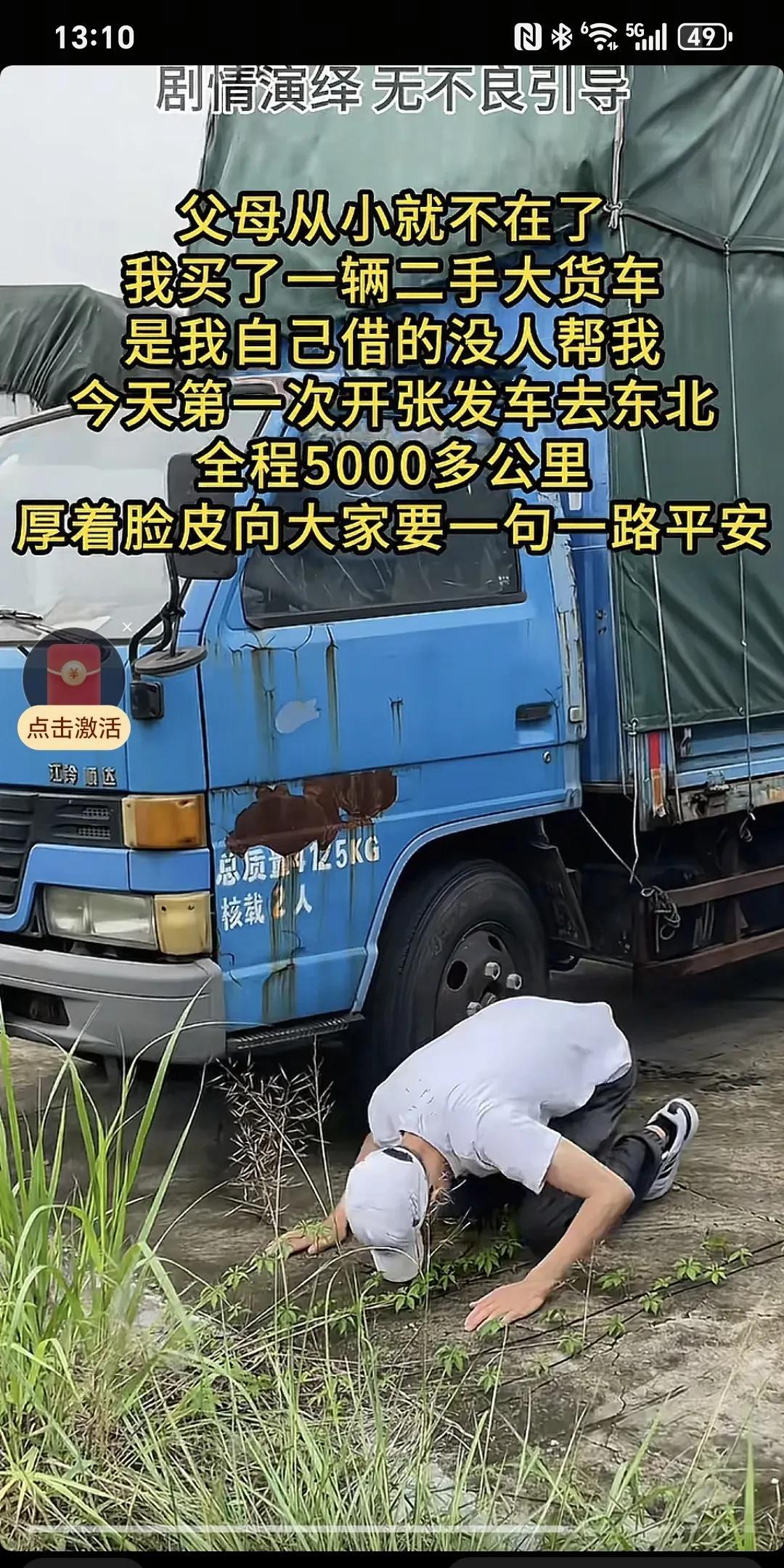 父母从小就不在了,我买的一辆二手大货车,是我自己借的,没人帮我,今天第一次开张发车去东北,全程5000多公里,厚着脸皮向大家要一句一路平安~ 祝你行程平安顺利,好运连绵!不求发大财,只愿天天有活拉。细水长流,财源广进! 开5000公里的车真的是很累人很累人,帅哥一定要吃好睡好养好精神千万千万不要疲劳驾驶,累了就歇会儿再开,安全第一,平安最重要!