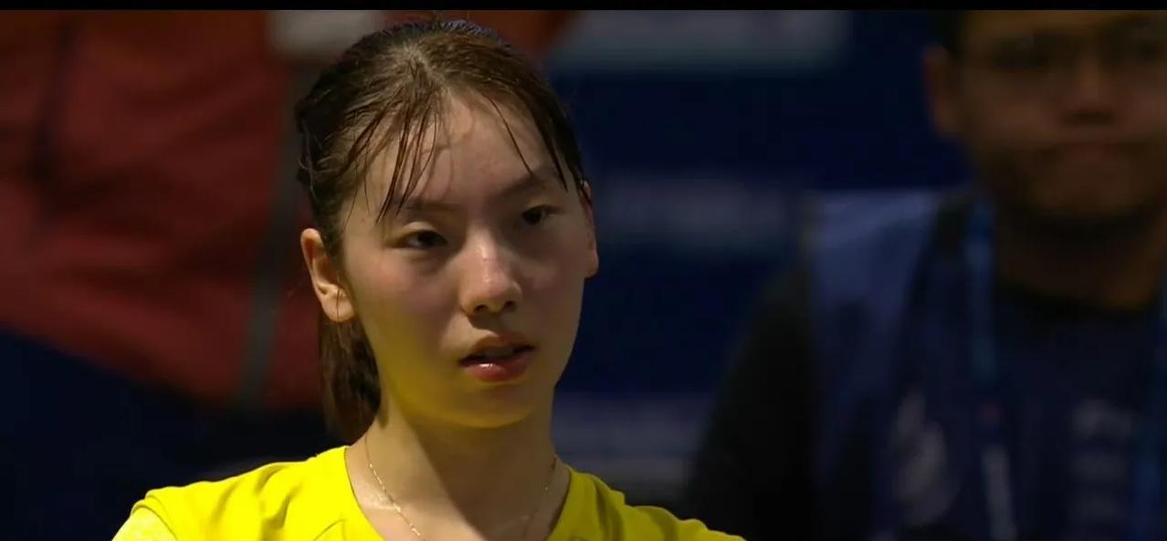 杨屹韵是削球手,今晚打得满头大汗,好像不擅长攻。 除了韩莹,其他女子削球排得上号