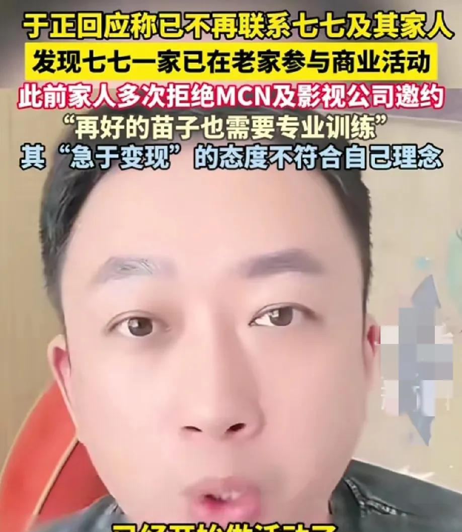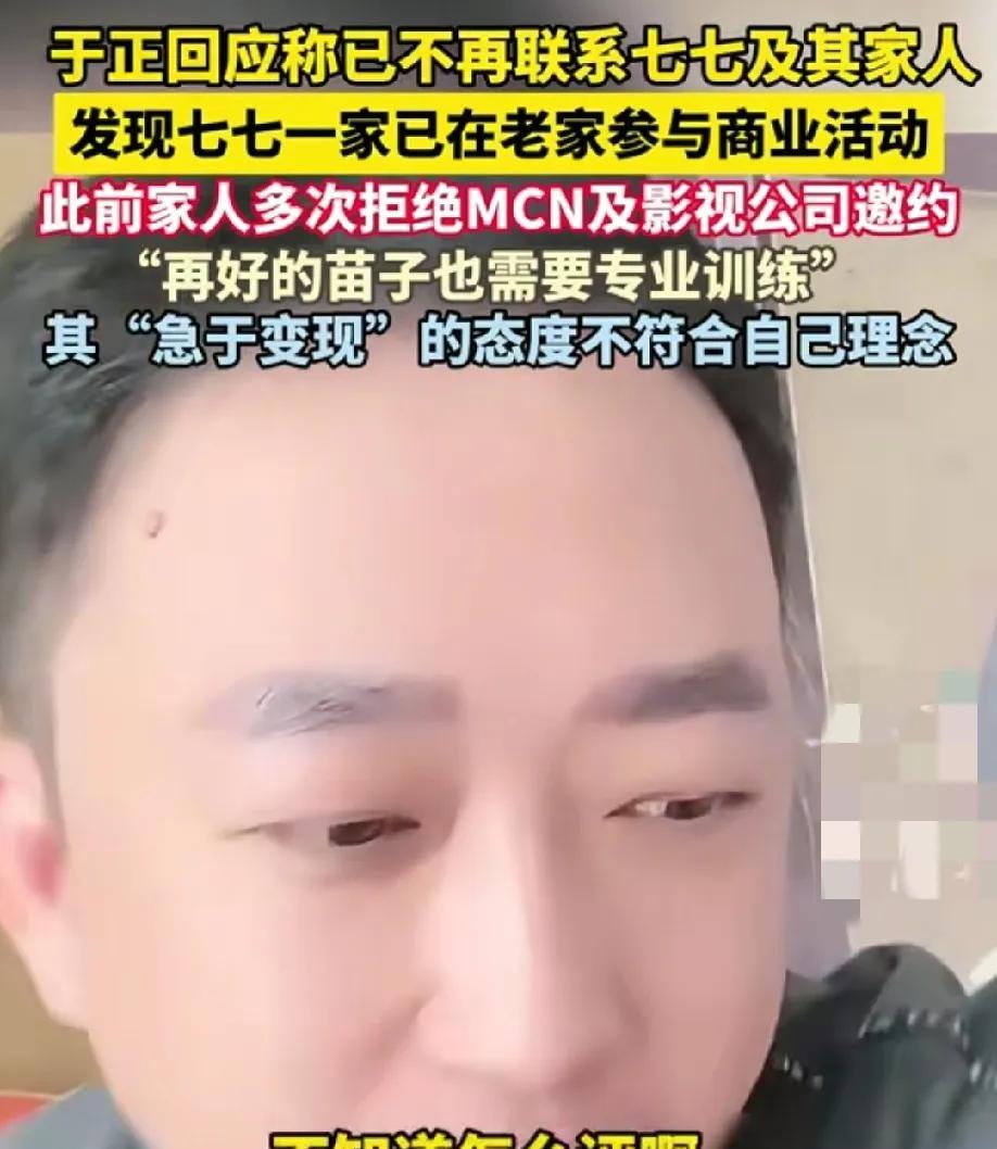 七七的妈妈太急功近利了,害了七七,于正在直播间说已经不联系七七和她的家人了,是因