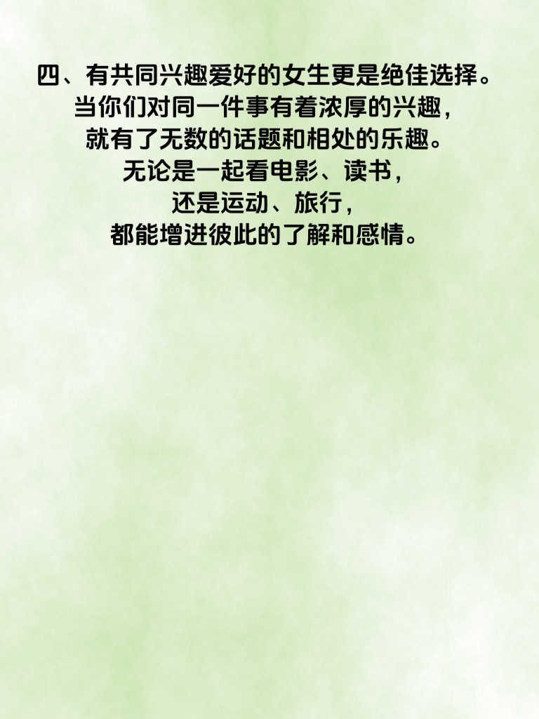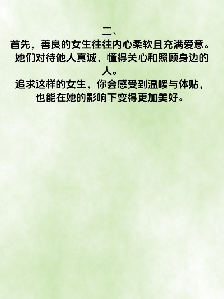 一、在追求爱情的道路上,男人们常常渴望找到那个能与自己携手一生的她。其实,有些女生更容易被锁定,一旦抓住机会,就能收获甜蜜爱情。 二、首先,善良的女生往往内心柔软且充满爱意。她们对待他人真诚,懂得关心和照顾身边的人。追求这样的女生,你会感受到温暖与体贴,也能在她的影响下变得更加美好。 三、热爱生活的女生也值得关注。她们积极向上,总能发现生活中的小美好。和她们在一起,你们可以一起探索新事物,共同创造丰富多彩的回忆,爱情也会在这过程中不断升温。 四、有共同兴趣爱好的女生更是绝佳选择。当你们对同一件事有着浓厚的兴趣,就有了无数的话题和相处的乐趣。无论是一起看电影、读书,还是运动、旅行,都能增进彼此的了解和感情。 五、所以,男人们要用心去观察身边的女生,锁定这些类型的她,勇敢地迈出追求的步伐,说不定爱情就在前方等着你。