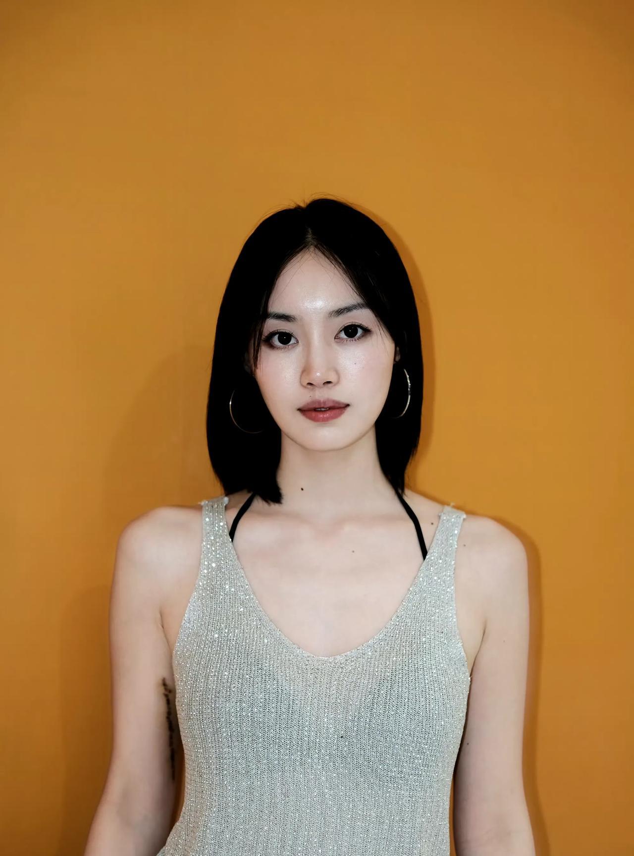 银闪吊带搭配黑色阔腿裤,简约又不失个性。在暖黄与素色背景前,或静立展现利落线条,或垂眸流露温柔气质,举手投足间,皆是自信洒脱的模样,尽显独特时尚态度。
