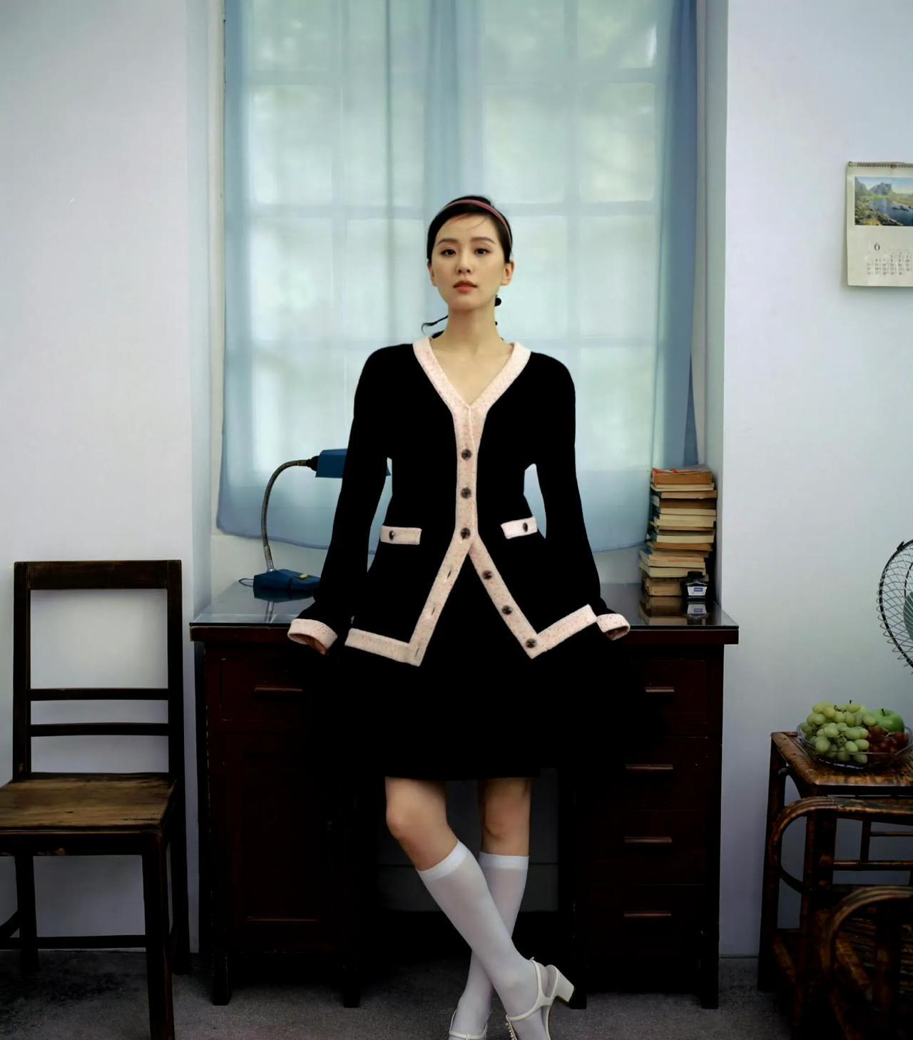 #刘诗诗#在这方复古小天地,风格随心切换。黑裙套装配白袜,是俏皮又优雅的少女;粉