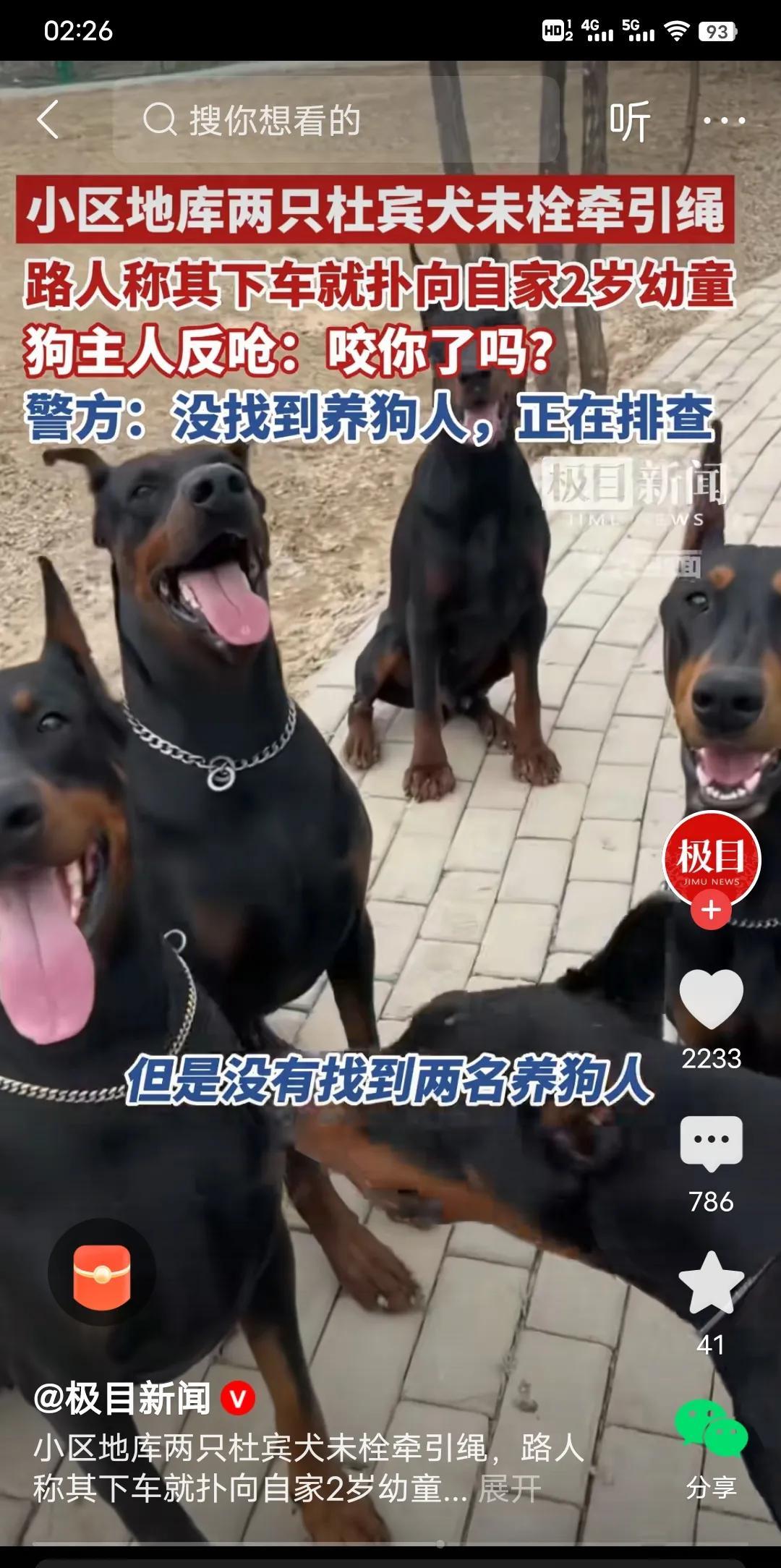 城市禁养狗刻不容缓 两支杜宾犬未牵绳袭击两岁幼童,孩子家属当场与狗主人发生争执,