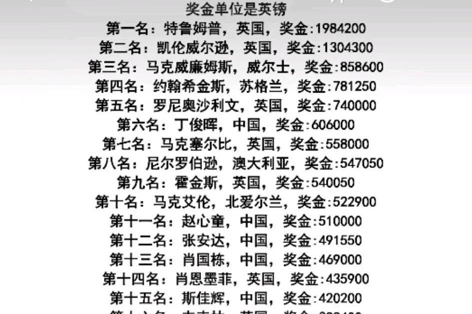 我国斯诺克第一个男子世锦赛冠军赵心童#斯洛克赵心童# ,已经确定参加斯诺克沙特大师赛,并且力压凯伦威尔逊,马克威廉姆斯,奥沙利文,希金斯,丁俊晖,马克艾伦,尼尔罗伯逊,张安达,肖国栋,斯佳辉,阿里卡特,韦克林等一众名将位列第二号种子,头号种子是世界第一特鲁姆普,赵心童能够背靠背夺下沙特大师赛冠军吗?沙特大师赛对局短,奖金高,决赛对局才19局10胜,第一第二第三轮都只有7局,采用7局四胜的超短方式,短对局偶然性大,考验球员的灵活应变能力,但是奖金一点不含糊冠军50万英镑和世锦赛奖金持平,亚军也有20万英镑,如果赵心童顺利夺冠奖金将可能是第三个突破100万英镑的选手直升世界第三 大家觉得有可能吗? 因为高奖金和短赛制有人吐槽过沙特大奖赛影响斯诺克排名平衡,但是资本时代土豪沙就喜欢这样没办法[憨笑][憨笑][憨笑][憨笑] 图二是附上最新的斯诺克世界排名前16的奖金数量,沙特大师赛卫冕冠军是特鲁姆普高居世界第一,50万英镑奖金的确太影响排名了,直接50万英镑都能力压张安达世界排名12