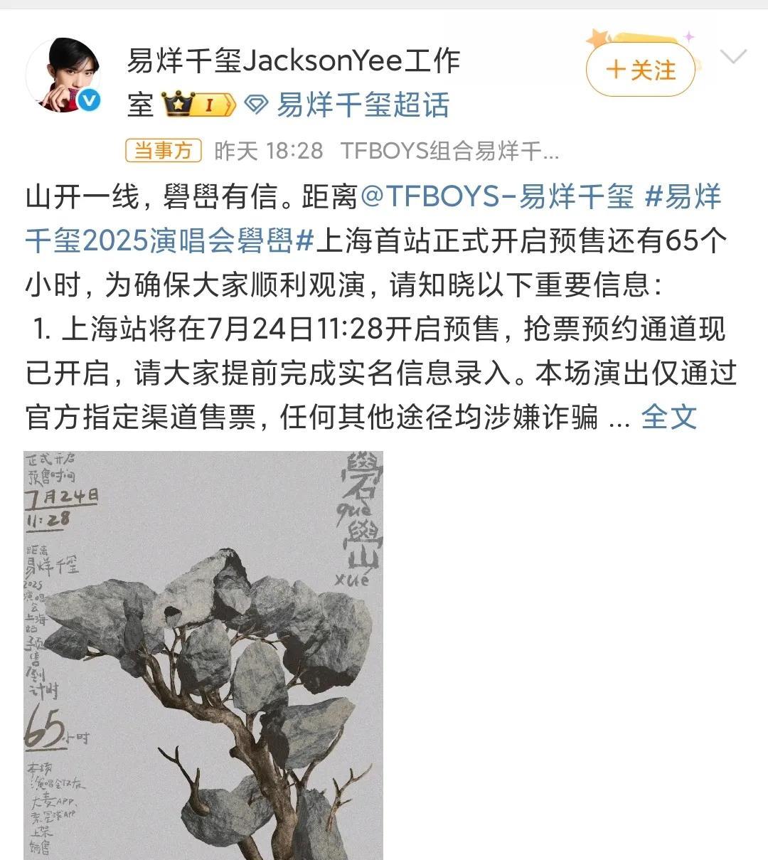 千纸鹤们注意!易烊千玺上海站抢票倒计时,强实名制让黄牛彻底凉凉。 温馨提示:24号11:28,记得找个信号好的地方,毕竟这次连代拍都救不了!