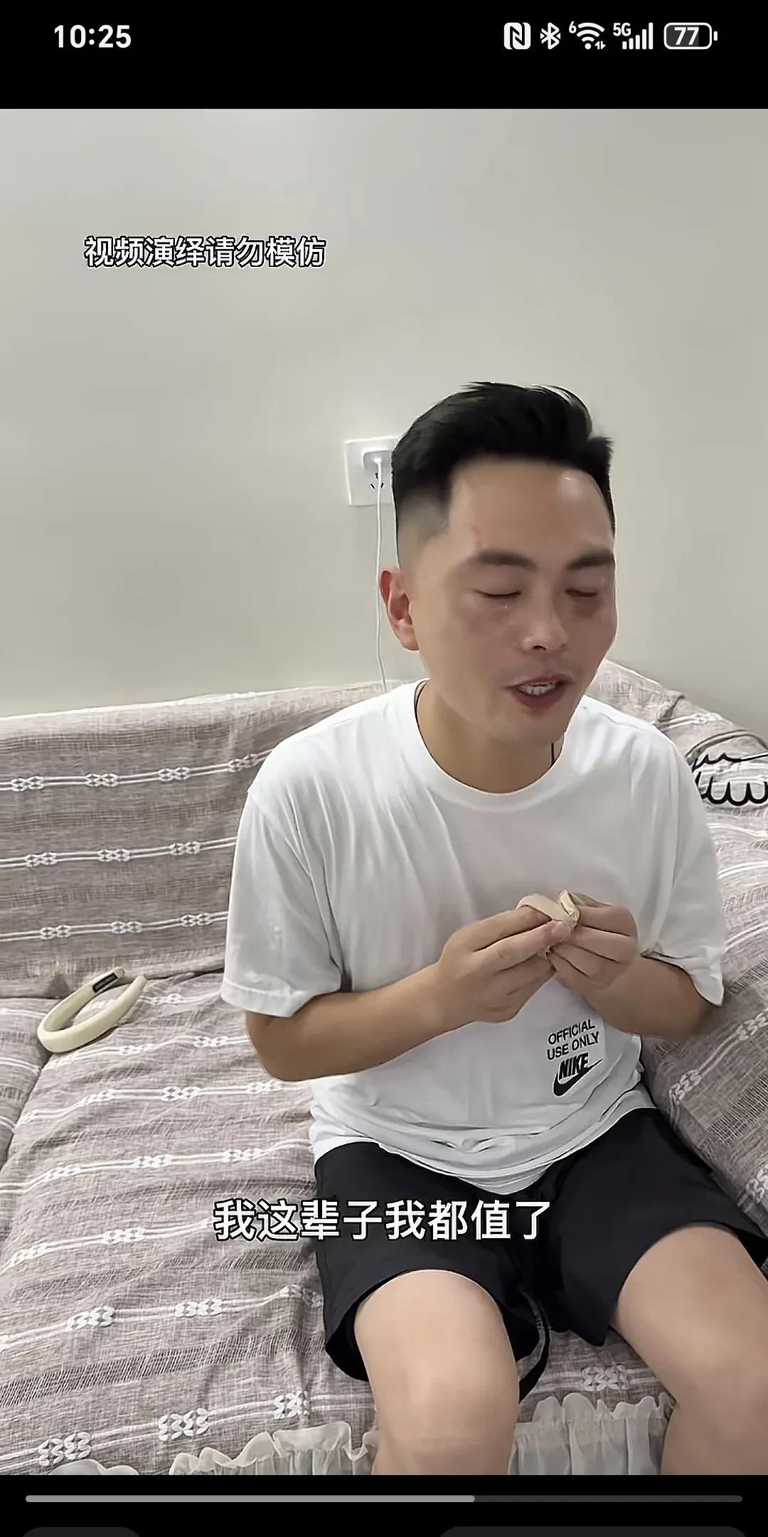 老婆一边拍打着正在哭泣的老公的脸,一边训斥道:“你挨的打哪有一顿是白挨的?啊,我打你,你可以怪我呀。”老公满脸委屈地说:“媳妇,我不怪你,你打我都是为我好呢。我能娶到你这样的媳妇,那可是我这辈子的福气啊。你今天能打我,明天就能出去闯天下,我的好日子还在后头呢,能娶到你这样的女人,我这辈子都值了。”老婆说:“知道就好,别哭了,做饭去吧。”老公哼哼唧唧地带着娘娘腔走了。 哥听话,咱死行吗?咱不活了行不! 姐 他最后那几步有点反抗情绪 我觉得没打服 再给两杵子 。 就冲那哼哼唧唧那几声这打都不白挨[呲牙][呲牙][呲牙]#对丈夫的惩罚# #夫妻间吵架#
