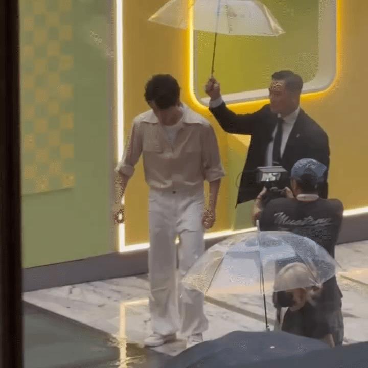 奈斯这个活动做得真好呀! 直播是宽大的摄影棚 安保是满满一群人,多到数不清人头 我们王楚钦只需要提着裤子走,不被雨淋湿就可以啦! 就是…… 最后就是 王楚钦参加这个活动唯一的烦恼应该是