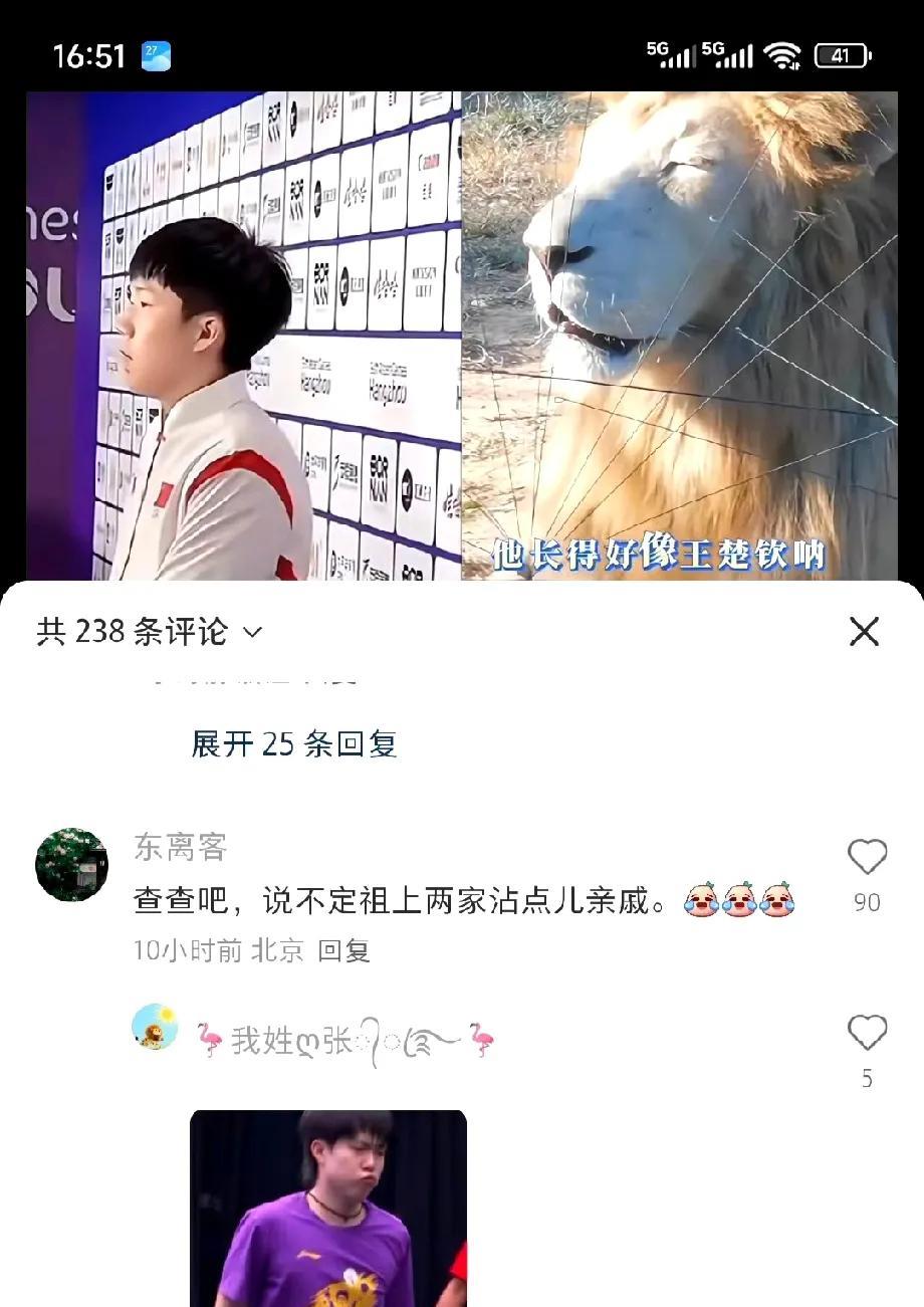 王楚钦一上网满脸问号 你说它长得像我也就算了 怎么还让查一查是不是祖上带点亲戚?