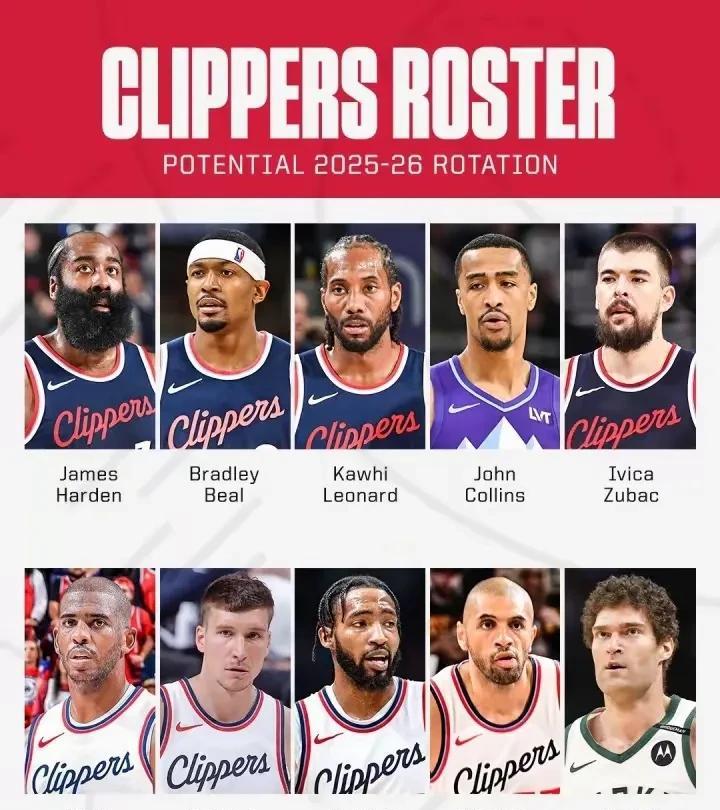 快船这么老,怎敌少年拳? 随着快船正式以一份价值360万美金的合约签下了自由球员保罗,至此,洛杉矶“养老院”成员已经集结完毕。 “首发五虎”将由哈登、比尔、伦纳德、科林斯以及祖巴茨五人担任,而替补则由保罗、博格丹诺维奇、小琼斯、巴图姆以及大洛五人坐镇,咋一看,快船的阵容非常饱满,巨星成色、冠军经验、老将经验、阵容配置、得分、组织串联、进攻等应有尽有,可仔细一看,除了伦纳德、比尔、保罗等伤病隐患太大之外,又多了一条年龄过老的问题! 据统计,主力与重要轮换中,有8人年龄达到30+,4人达到35+,在新一代青年才俊崛起的西部,快船是禁受不住雷霆、火箭、森林狼等球队的冲击的,“伤病隐患+老龄化”问题,将会决定快船究竟能走多远!“拳怕少壮”或将在快船身上应验!