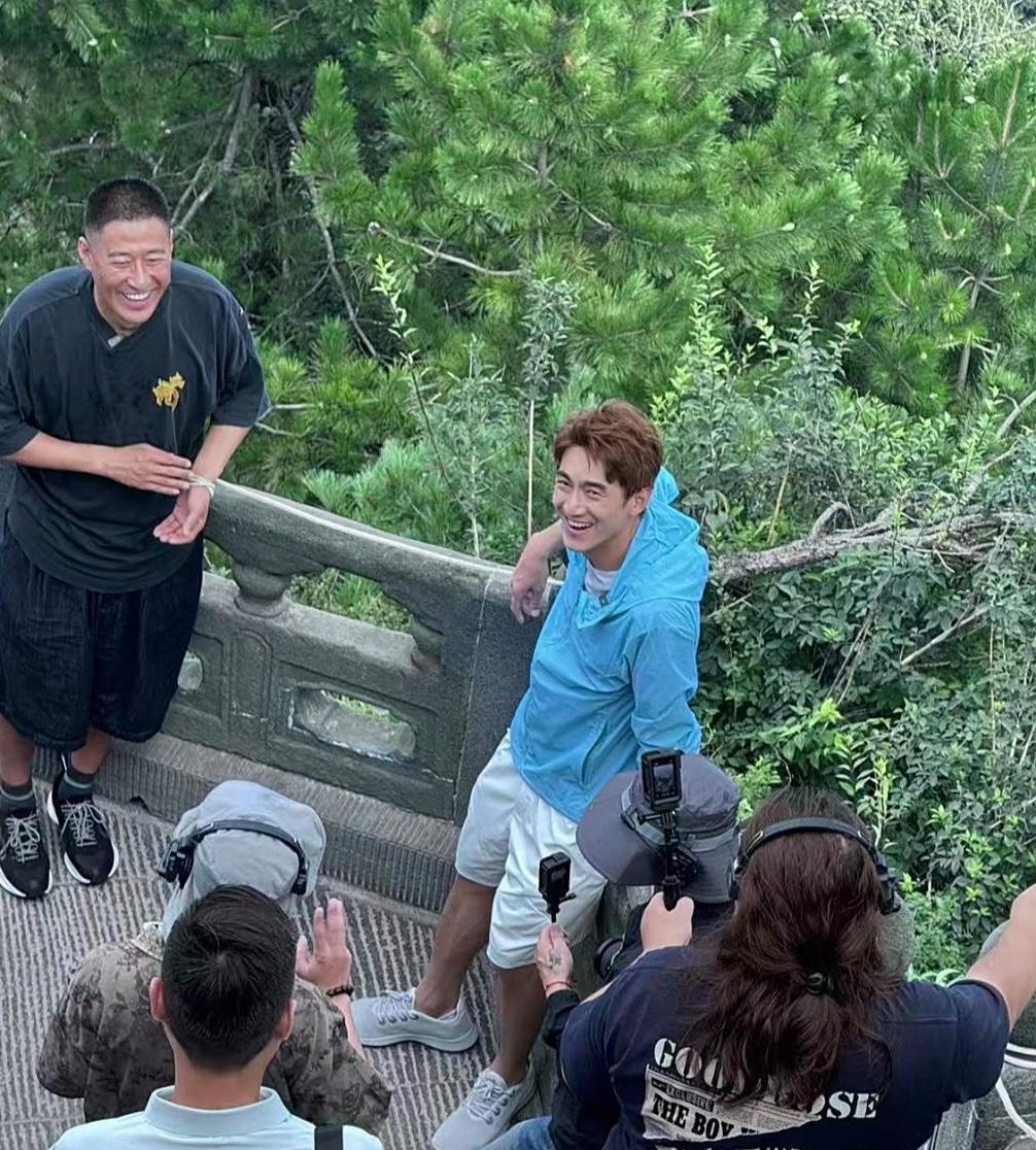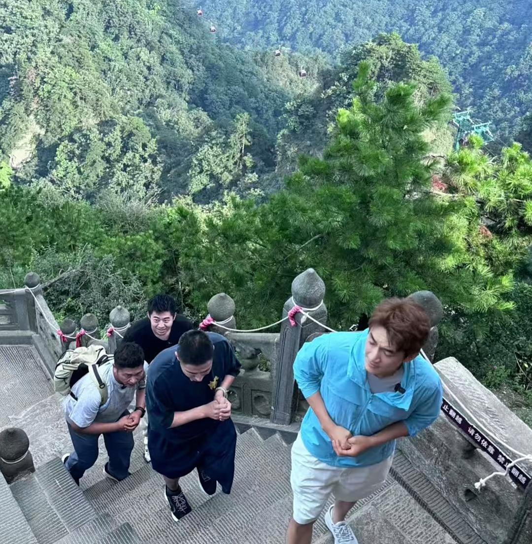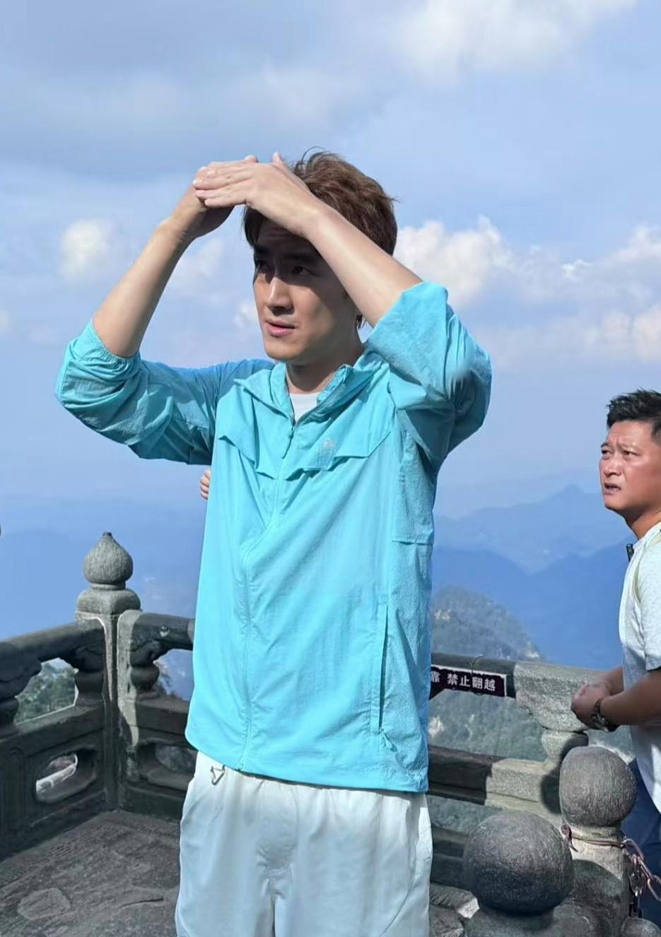 林更新和朋友一起爬武当山,他的穿衣打扮好帅气,真人很高很瘦,颜值很出众,比普通路