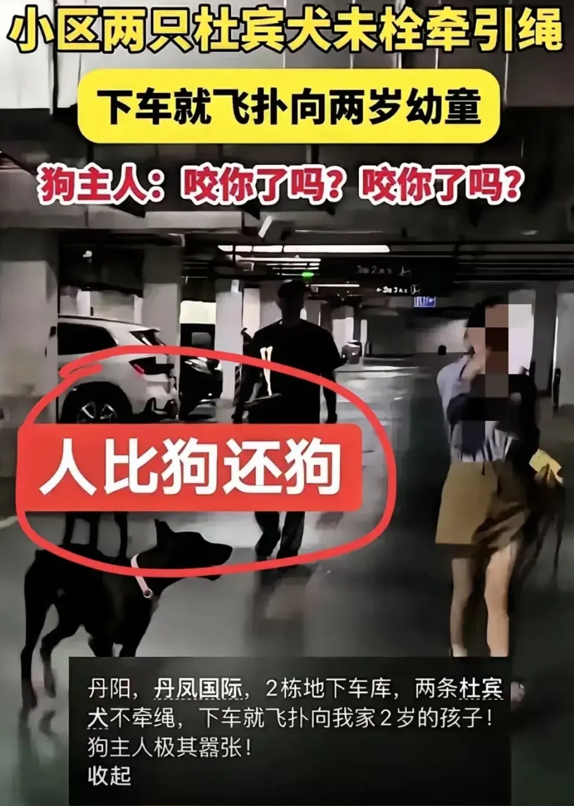 闹大了,两条杜宾犬的女主人终于被找到了,不是罚款就是罚则。 实在忍不可忍了,又一个比狗还狗的主人出现了,两只杜宾犬,体型大,又壮实,出门还不牵绳子,也不套狗嘴,狗见到小孩冲过去,小孩被吓哭了,也不立马道歉,反而气势汹汹的骂小孩的家人为什么要打她的狗,趾高气扬的用手指指着狂骂:打她的狗试试,信不信neng死你! 在这个女主人的眼里,狗的一举一动,胜过她的亲人,容不得别人对她的狗指责和抱怨半句,好像觉得她的狗是最懂事最听话的,不会闯祸,也不会咬人,她从来没想过如果真的狗咬到人了,出大事了,她要履行什么责任,一直幸灾乐祸,总的来说还是得意的太早。 但是话又说回来,她能养两条杜宾犬,说明条件好,不差钱,人富裕起来了,也就飘起来了!这种人真的得治治了 有的人说,必须罚款10万,也有的人说必须拘留教育,众说纷纭,但是提议也是好的,为了社会更好和谐安定。