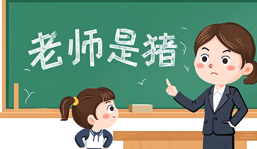 小时候淘,老师总骂我!有次在黑板上留言骂她,老师进来问:“是不是你写的?” 我不承认!老师指着黑板上的字:“谁写的谁是猪!” 我这暴脾气,蹭就站起来了:“你凭啥骂我?”