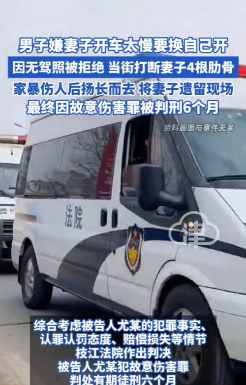 “必须严惩!”湖北宜昌,女子开车带丈夫回家,因开车的速度较慢,丈夫就让她停车换他来开,考虑到丈夫并没有驾驶证,女子就拒绝了。不料,丈夫瞬间暴走,一把将女子拽出汽车,随后当街殴打,导致女子左侧4根肋骨骨折!事后,丈夫更是大摇大摆的离开了,对躺在地上的女子不管不顾。网友:远离渣男! 那天,女子开着车,丈夫坐在副驾驶,觉得妻子开得慢,丈夫就不耐烦地让她停车,说换自己来开,女子一听就拒绝了,因为她知道丈夫根本没有驾驶证,无证驾驶不光危险,还是违法的事。 谁知道,就因为这一句话,丈夫瞬间像疯了一样,他猛地拉开车门,一把将女子从驾驶座上拽了下来,女子毫无防备,重重摔在地上,还没等她爬起来,丈夫就冲上去,对着她拳打脚踢。 打了好一会儿,男子打累了,竟然大摇大摆地转身就走,对躺在地上疼得直哼哼的女子不管不顾,后来,有人赶紧报了警,还叫了救护车,医生检查后,女子左侧4根肋骨都骨折了,身上还有不少瘀伤。 警方很快抓到了那个男子,最后,法院判了他6个月有期徒刑,不得不说,这根本就不是丈夫,分明是恶魔,就为了不让无证开车就下这么重的手,必须严惩,让他知道打人是要付出代价的! 说真的,夫妻之间有话好好说,动手打人本来就不对,更何况还是因为违法的事,不管什么时候,家暴都不能容忍,遇到这种情况,一定要学会保护自己,该报警就报警,可不能忍着。 信息来源:《当街家暴!男子打断妻子4根肋骨只因嫌她开车太慢!被判刑六个月》极目新闻