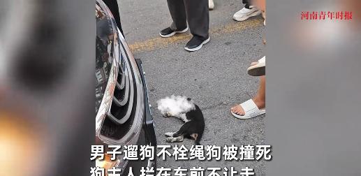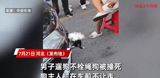“这下长记性了!”2025年7月,河北,一男子遛狗却不栓狗绳,狗狗不幸被车撞死,