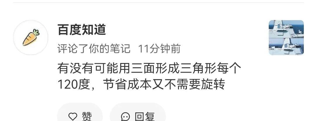预警机上的大转盘能安装上驱逐舰吗? 这一想法,我立马想到的这不就是预警机的大转盘雷达能不能上舰的话题啦? 我们的空警500预警就是机采用了固定式主动相控阵雷达,这个固定式不就是每个阵列“视角”120度,三个阵列完整实现360度环绕侦测吗?所以雷达可以是固定式,不需要旋转。由于可以直接通过改变雷达波束形状实现反隐身,多好的设计啊! 这个设计完全符合网友的建议啦! 但若将预警机雷达直接移植到驱逐舰上,需解决以下问题: 所以原理可以,直接照搬或许不能。但缩小体积设计呢?毕竟如空警500的探测距离达到470公里,对隐身目标探测距离也有200公里,缩小到一定程度牺牲了探测距离或也是可以的吧! 其实一切都要考虑费效比,投入产出很关键。
