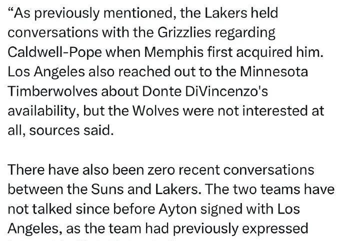 BrettSiegel透露,灰熊签下波普前,湖人曾与其沟通;湖人还询问过森林狼