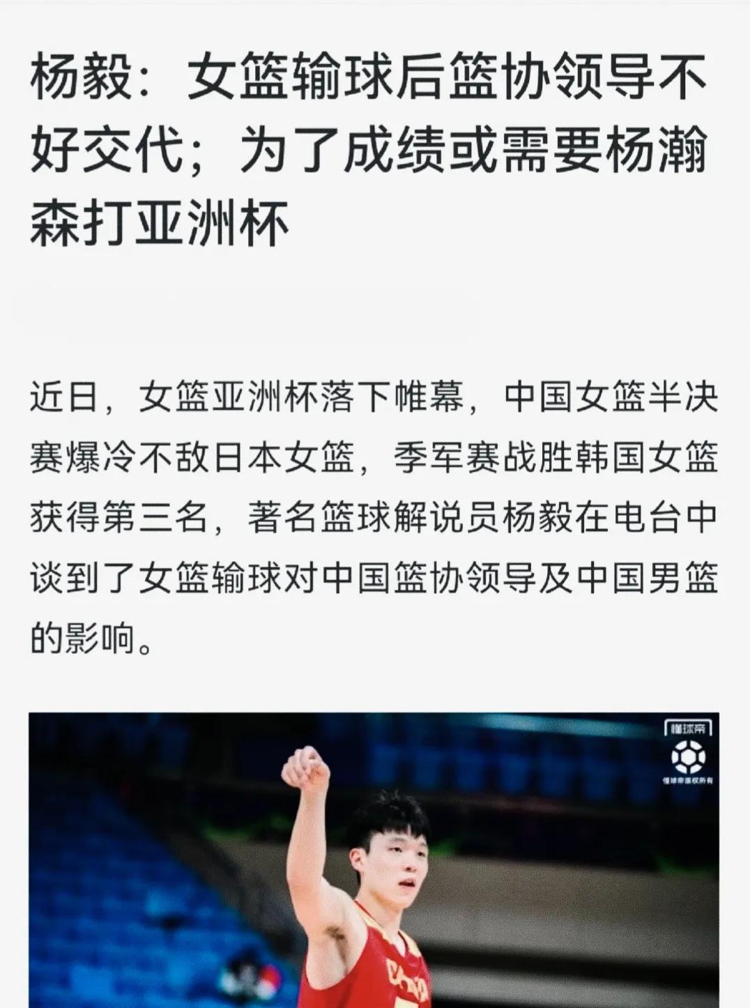 杨毅这会怕是要说对了,杨瀚森估计连回国的机票都订好了… 杨毅分析说,女篮亚洲杯输