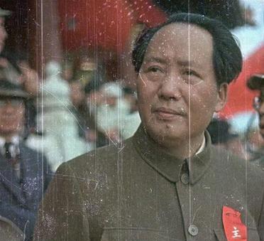 这张照片拍摄于1949年10月1日。毛主席与周总理在天安门城楼上审阅开国大典宣告