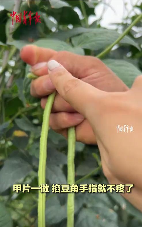 “人怎么能聪明到这种地步!”7月21日,河南开封,大妈去地里收豆角,掐豆角的时间一长,不仅指甲磨损严重,手指头还疼得受不了,于是她就到美甲店贴了个甲片,没想到真的不疼了,随后,村里种豆角的人组团去做美甲去了!网友:学到了,这就去村里开美甲店。 最近这段时间,又到了豆角成熟的季节,山东、河南等地的种植户忙碌起来,纷纷来到田间地头采摘,然而,这收豆角却是个体力活,别看豆角细细长长的,想把它拽下来可得费一般功夫。 采摘时,需要掐住豆角顶端,然后用力掐断,特别的费手指甲,经常掐一个小时就疼得受不了了,开封的这群大爷大妈同样遭遇了这个问题。 就这样,大妈贴了一个甲片,然后去地里试了试,发现一点不耽误干活,而且也不用担心手指头疼了。 最终在大妈的号召下,村里的种植户集体涌进美甲店,纷纷做了同款美甲,这下手指头疼的问题就解决了! 网友看后表示,科技就是为人民服务的,同样也十分佩服劳动人民的智慧! 大家对于这件事是怎么看? 信息来源:《村民结队到美甲店做摘豆角甲片,“得劲,甲片一做,掐豆角手指就不疼了!”》中国青年报