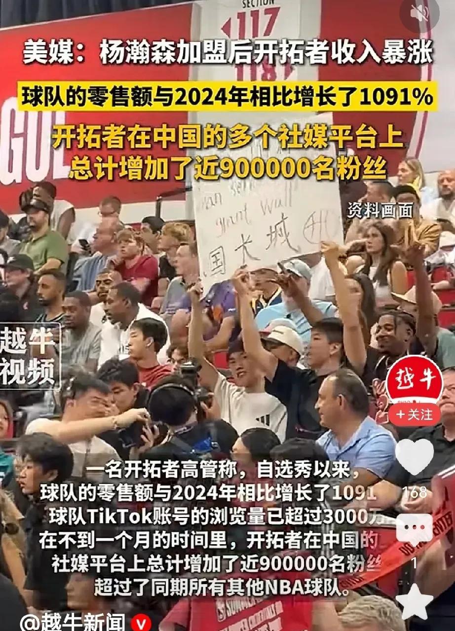 杨瀚森加入!开拓者零售额暴涨十倍! 近日看到美国媒体报道,杨瀚森加入开拓者刚刚一