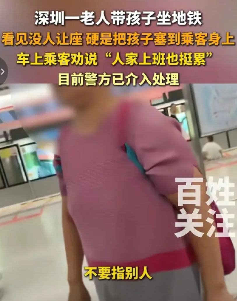 话说深圳一地铁上下班高峰期,一阿姨带着一小孩挤上了地铁,左顾右盼见没有座位,于是就把自家小孩硬往坐着的乘客(姑娘)身上坐,那熟能生巧的姿势,一看就没少干这事。