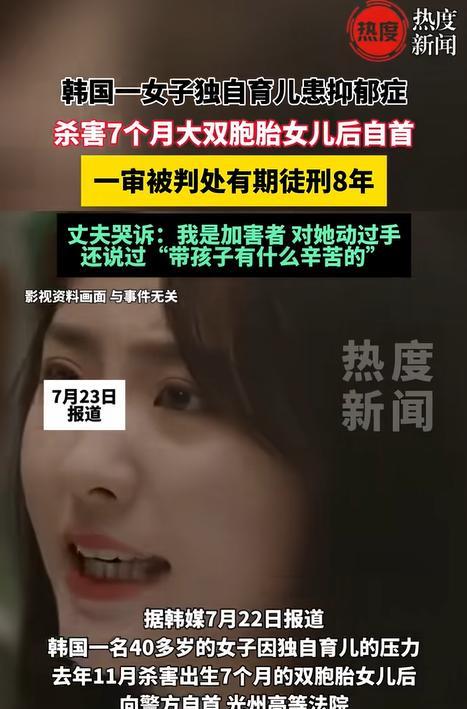 “太可怕了!”7月23日韩国一女子独自育儿患抑郁,杀害7个月大双胞胎女儿,一审获