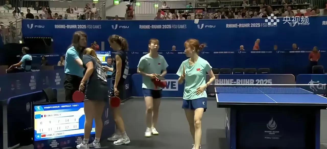 在德国进行的世界大学生夏季运动会乒乓球比赛,中国队在连丢男女团体、男双和混双四项冠军后,终于在女双项目收获冠军,杨屹韵/赵尚、韩菲儿/王晓彤在半决赛战胜各自对手,成功会师决赛,提前包揽冠亚军,锁定本届大运会乒乓球项目首金。