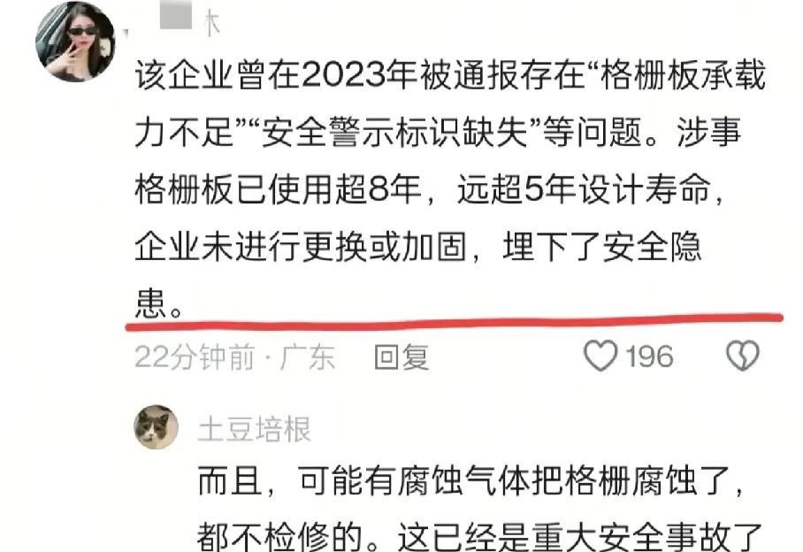 是很纠心,但是决不相信这么大的矿业公司而且还是国企单位把生产重要通道或观察平台的重要部件超标使用,这事不太可能,要么就是通道常年不用而忽略,要么就是格栅板已经变位不在安全状态下,再就是支撑架或沟槽已经破损断裂而没被发现,再就是格栅板质量问题,等待事故通报在看看是什么问题倒致的。