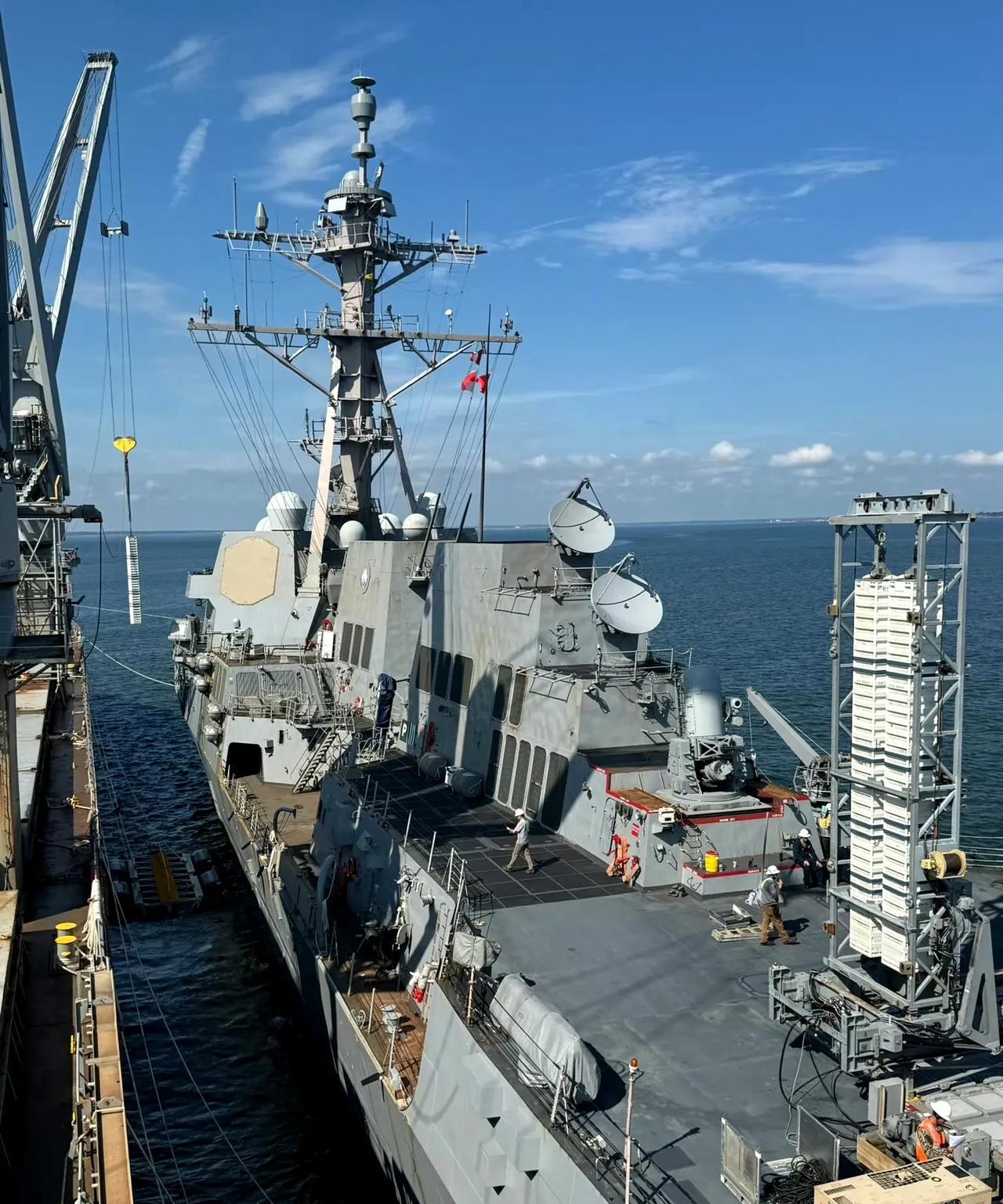 美海军的驱逐舰,海上装填导弹 #美国武器储备# #美国导弹驱逐舰# #美国驱逐舰#