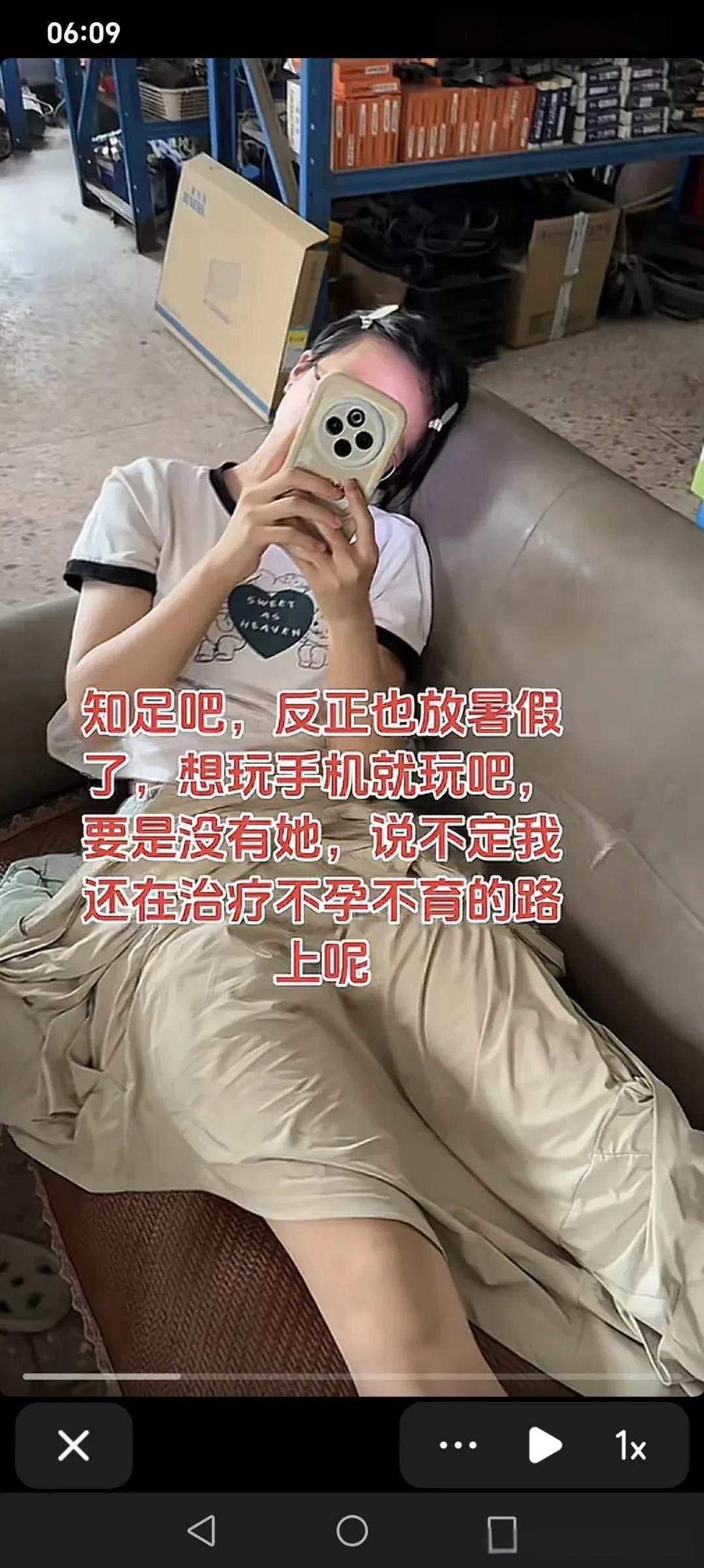 知足吧,反正放暑假了,想玩手机就玩吧,要是没有她,说不定我还在治疗不孕不育的路上