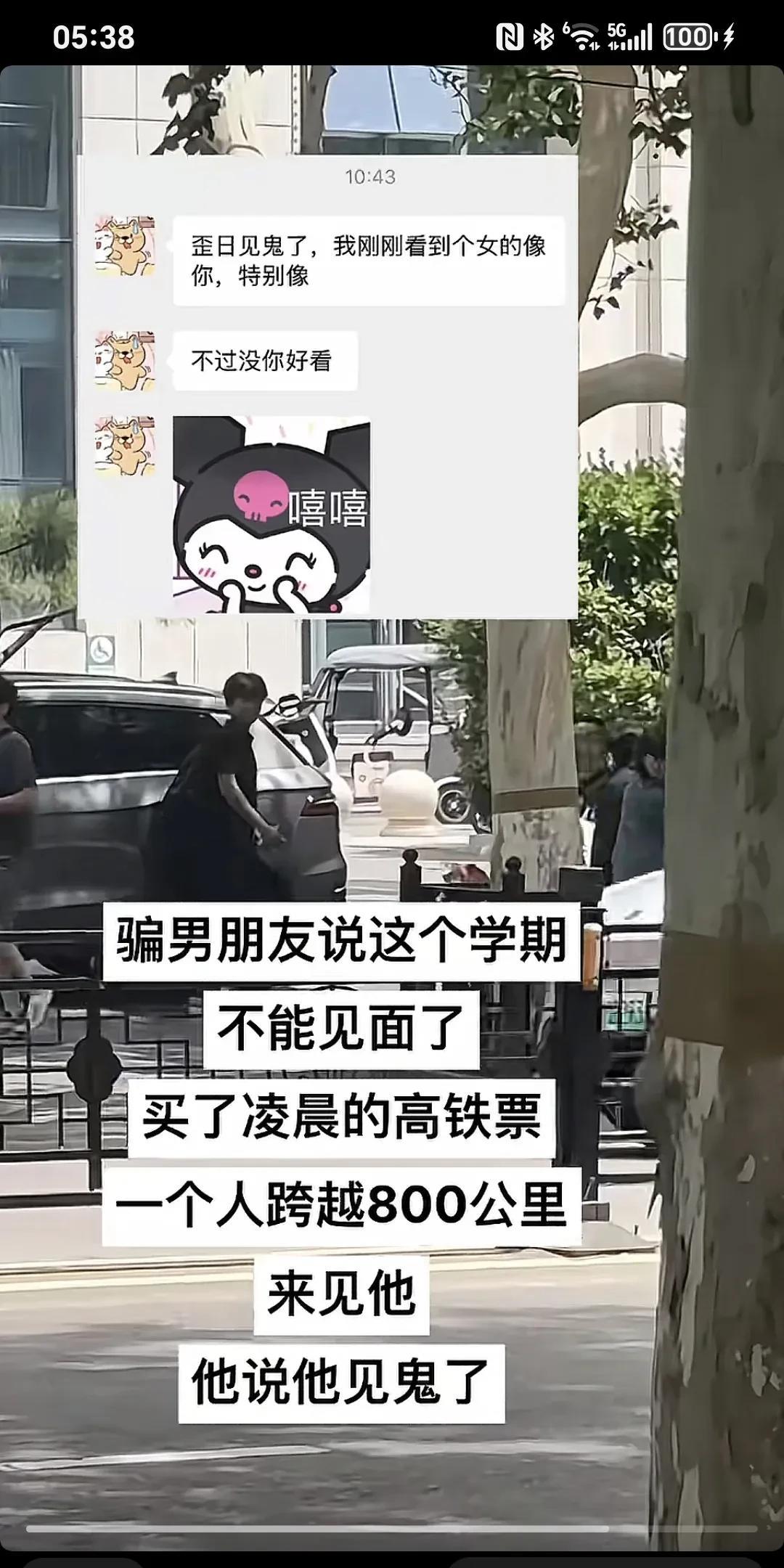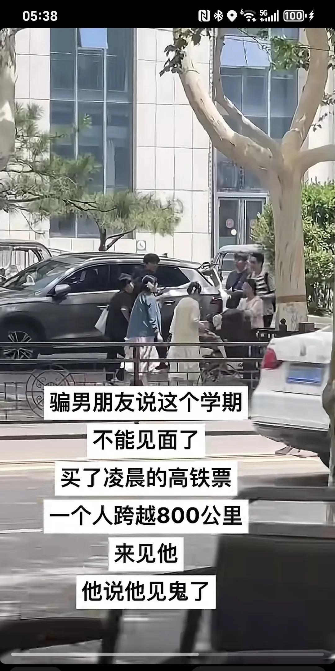 骗男朋友说这个学期不能见面了,买了凌晨的高铁票,一个人跨越800公里来见他,他说他见鬼了~ 隔着两条路,车来车往都能发现树下有个女生,我哥平常走路上也没见多老实,看就算了,还来回看了好几眼,还没认出来你,说还没你好看,他这不就是说本人没有照片好看吗。 虽然他没认出来是你,但你看他看女孩子看的多仔细呀这么远都能看出来长的像你。 在怀疑和无视之间他选择了见鬼。 这么远还能看到,说明他在路边走经常观察周围的女生[笑][笑][笑]#深情的骗局#
