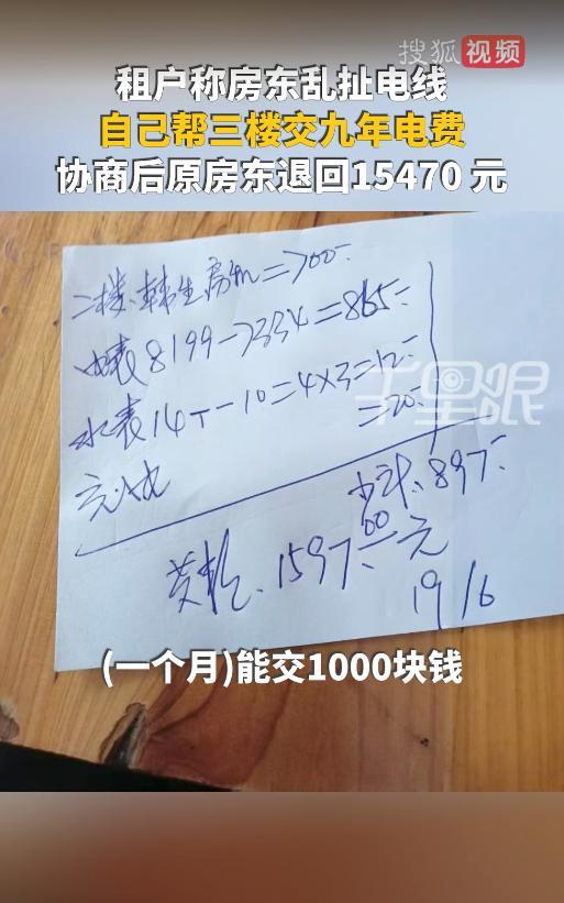 “太缺德了!”7月18日,广东中山,男子家中就一台空调,电表却转得非常快,一个月电费上千元!他找来电工检查,即使家里的电闸拉掉了,电表都还在走,经检查,是楼上的房东将电线接到了自己家,他替房东交了9年的电费!网友:必须严惩。 现在很多人为了寻求更好的发展,都会前往外地工作,而租房子就成了这些人必须经历的事情,遇到好的房东自然省心,但如果遇到耍心眼的房东,烦心事可以说是一个接一个! 2016年时,韩先生就租下了这间房子,屋子里除了日常的用电设备外,就只配备了一台空调,由于人少,一台空调倒也讲究,而且还能省点电费,韩先生就住了下来。 然而,前不久天气热了之后,韩先生发现家里的用电量特别高,明明就一台空调,电费却上千元,他多次找房东询问,但对方始终表示这是正常的。 最后,韩先生只能找来电工检查,不查不要紧,一查气死人!房东竟将自家的电线接到了他的电表上,怪不得他家电费那么多。 证据摆在面前,韩先生再次找房东理论并退房,可对方仍然不肯承认,直到他报了警,房东这才退回1.5万元。 网友看后非常生气,纷纷吐槽这房东真是缺德,必须给人家道歉! 大家对于这件事是怎么看的? 信息来源:《房东偷接电线偷租户的电,租户帮房东交电费9年!报警后获赔15470元》大象新闻