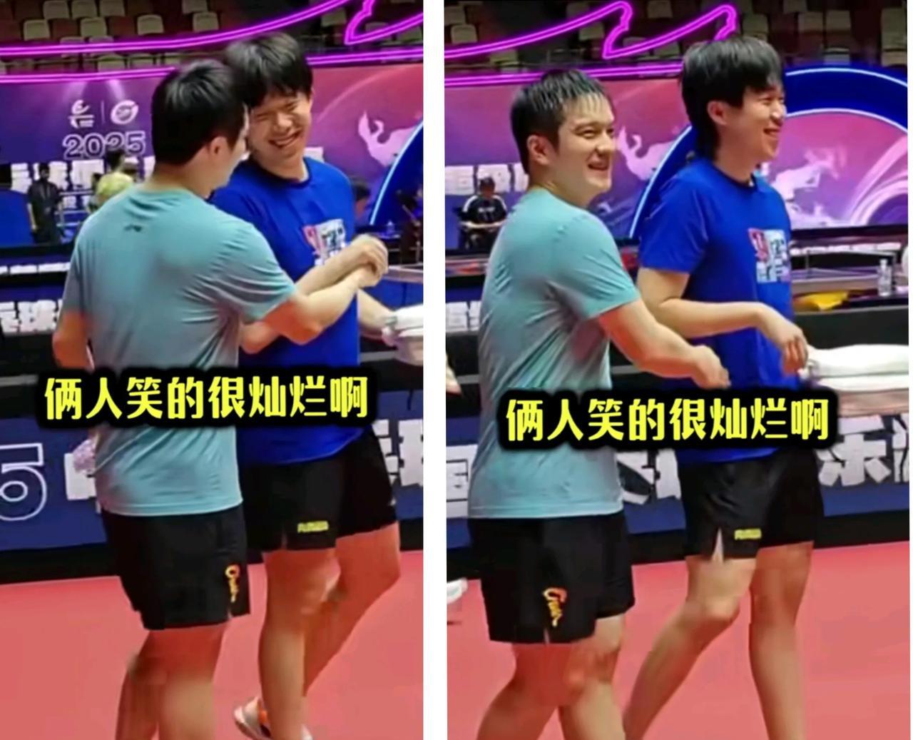 樊振东和王楚钦开心的握手有说有笑。[呲牙][大笑]他们一直都是那么美好,网友把两