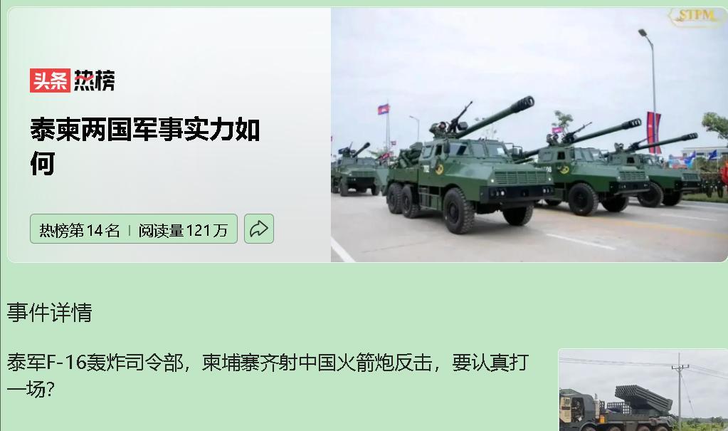 柬埔寨有东大支持,泰国敢搞大的,分分钟军事化捷浦寨,刚打阵风,现在打F16
