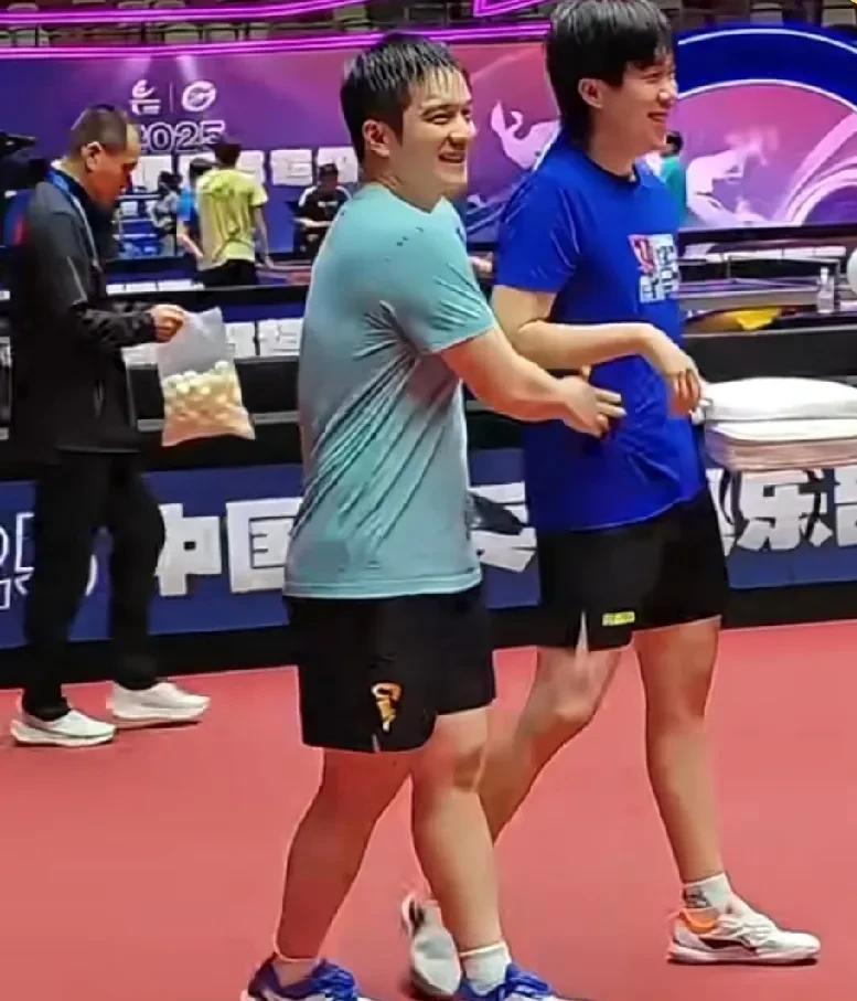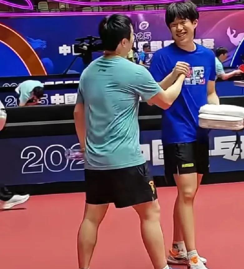 看他们笑,我也不禁咧嘴笑了! “乒超联赛”训练场地,樊振东、许昕、周启豪三个人在一起聊天。 这时王楚钦走过来,樊振东看见迎了上去,王楚钦亲切的喊着“东哥”,两兄弟笑着击掌! 王楚钦笑成了眯眯眼了,又看见东哥心里一定很高兴吧! 他们关系一直非常好,即是队友又是并肩作战的战友,是一起为国争光的人! 只是有些人不自量力的给他们绝交了! 一声东哥好暖心啊,你们都是最棒的!