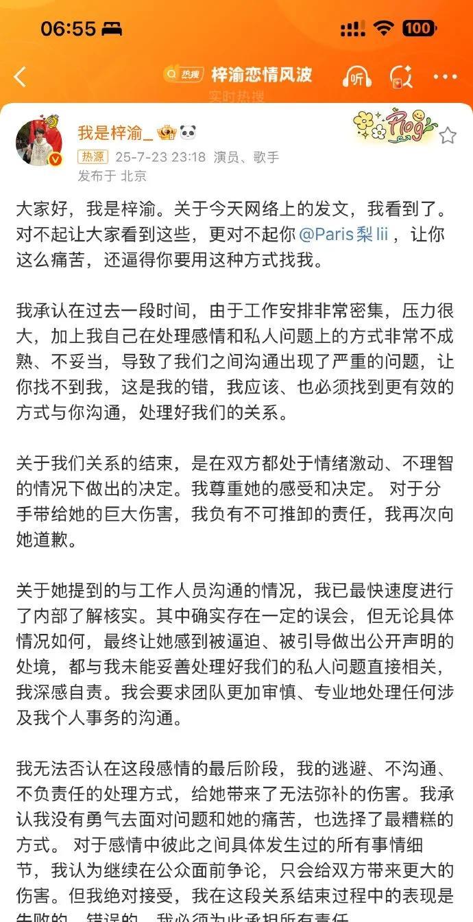梓渝太难了:经纪人让退圈,前女友还非要网络撕破脸?私下分手不行吗,连朋友都没得做