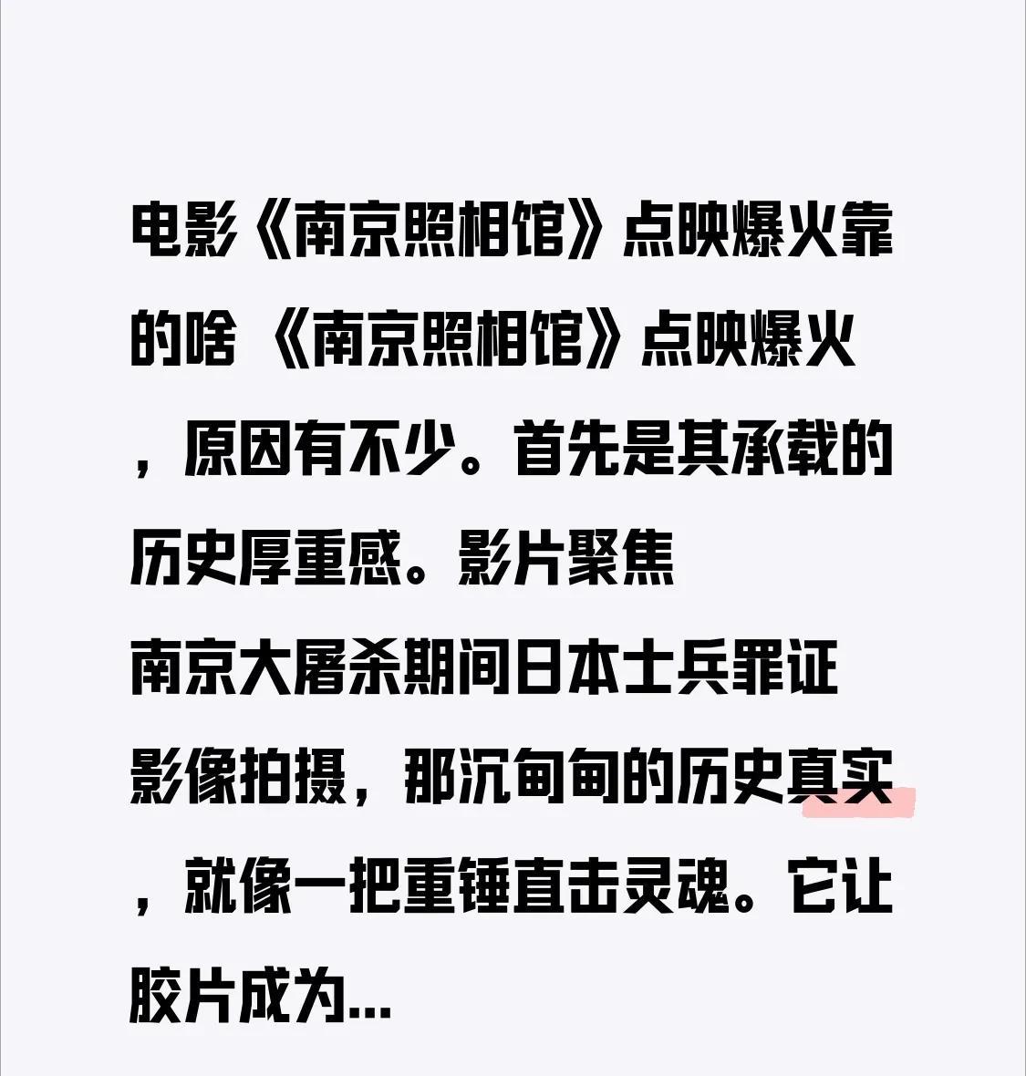 电影《南京照相馆》点映爆火靠的啥电影《南京照相馆》点映大火是凭啥呢?《南京照相