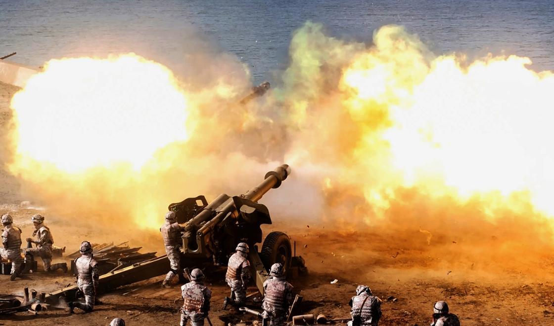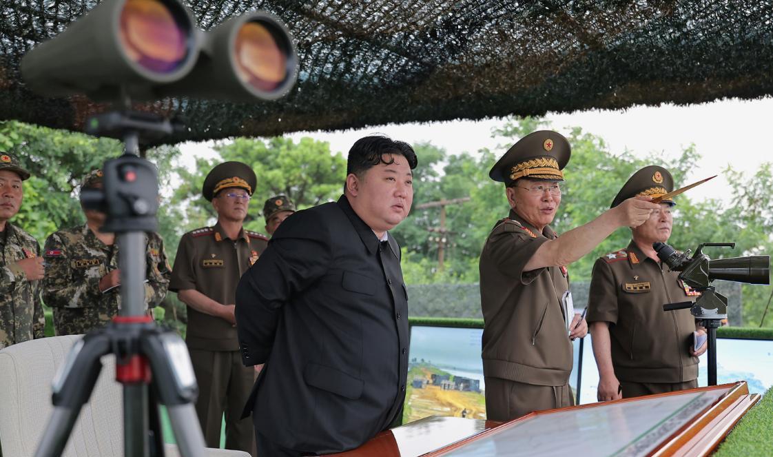 金元帅近况照片:观摩各大联合部队火炮射击训练。 时间是7月23日。 朴正天、卢光