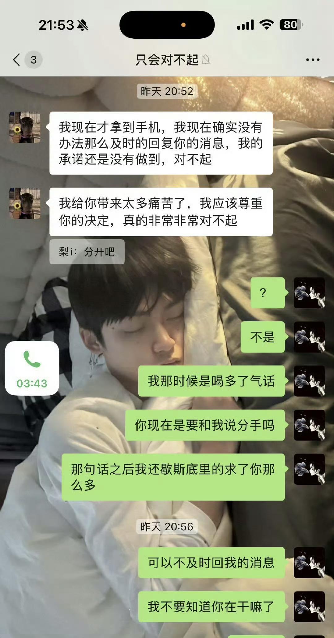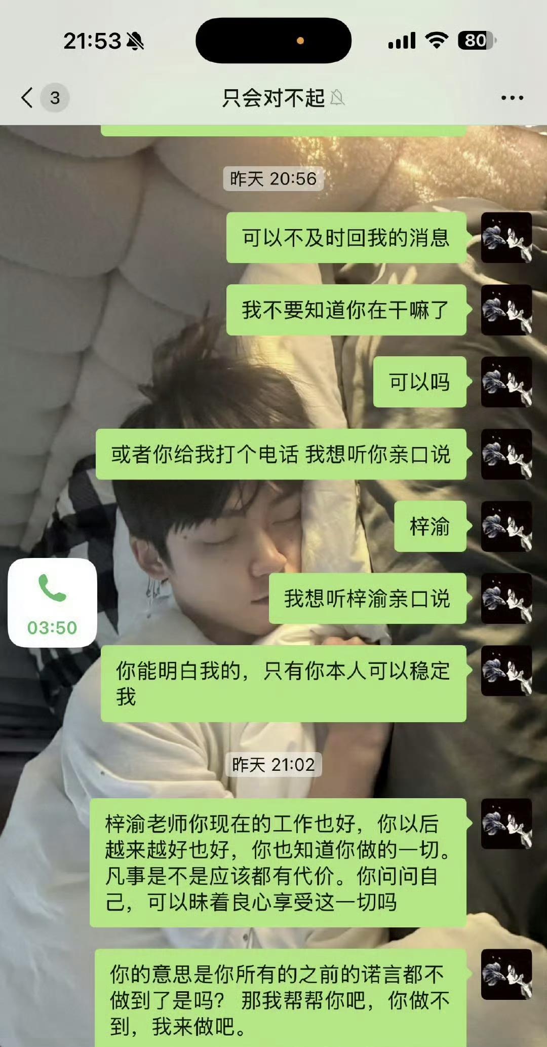 嫂子又放了和梓渝的聊天记录,梓渝看还挺真诚的,他表示“不如就当是一场梦我做回普