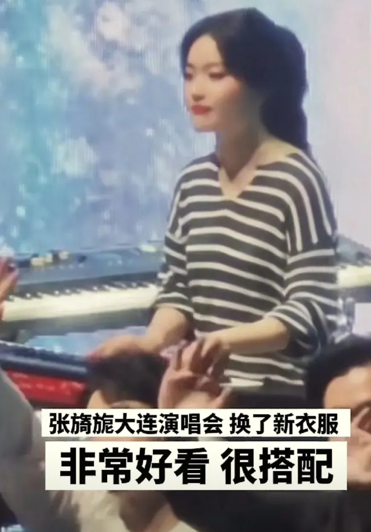 刀郎大连演唱会上,张旖旎换上V领横格上衣,显得独特、干练、美丽。 在以往场次,张旖旎一直身着长袖、瘦腰白衬衫,甩着马尾辫,步履轻盈地入场,坐在琴台之上,除了个人弹奏外,还耳听八方,把控乐队演奏,履行队长之责。这次大连之行,张旖旎改变着装风格,歌迷们感到新奇,也由衷地赞美。