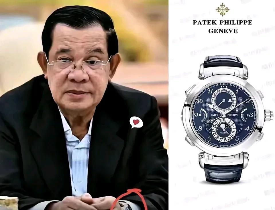大家能够认出洪森戴着的腕表是什么牌子吗?一看就是价值不菲。洪森喜欢名表,曾经见过他戴过市场售价高达3000万人民币百达翡丽。其实虽然3,000万的表和30块钱的电子表价格差距巨大,但是每天走的时间都是24小时。不就是看时间的一个装置吗?功能和几块钱的电子表一样,也就是一些权贵想显摆显摆,证明自己有钱而已。要是戴在一个要饭的手腕上,也就等同于废铁一块。