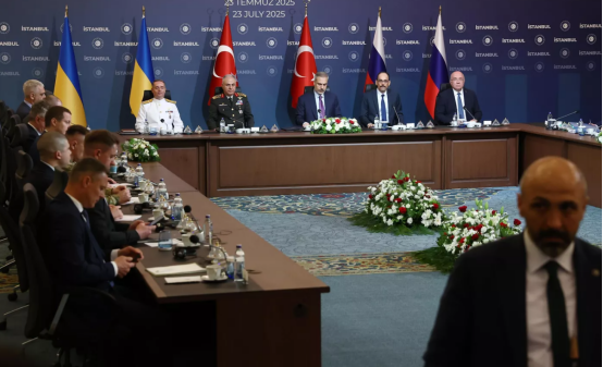 俄乌三轮谈判结束,乌克兰代表团一个细节透露:和平或许不远了 7月23日,俄乌代表团在土耳其举行第三轮闭门谈判。但这次会议仅持续了一小时便草草收场,足见双方分歧依然巨大。除了达成交换1200名战俘以及俄方“慷慨”归还3000具乌军遗体之外,几乎没有实质性成果可言。 不过,真正透露“变局信号”的,不是文件内容,而是乌克兰代表团的“穿着风格”。当俄方全体代表依旧西装革履、整齐入场时,乌方代表团则出现了显著变化:除了仍有一人穿着迷彩,其余成员纷纷换上了正装,代表团团长乌梅罗夫甚至穿着高领毛衣出场。相比5月谈判时乌方全员军装、翻译刻意规避俄语的“战时状态”,此次更像是一种“去军事化”的信号,悄然传递出一个信息:战事进入收尾阶段。 也正因为如此,特朗普抛出的“50天最后通牒”更像是一记哑炮。他曾威胁称,若在50天内无法实现和平,将制裁与俄保持贸易往来的国家,甚至考虑与欧洲联手向乌提供“爱国者”系统。但克里姆林宫对此几乎毫无反应。俄军依旧在顿巴斯稳步推进,无人机持续对哈尔科夫发动袭击,克宫发言人也直言:“别指望出现什么谈判奇迹。” 当前俄方紧守两条红线:一是乌克兰必须正式承认克里米亚及四州的归属;二是必须保证永不加入北约。对俄罗斯而言,只要战场上还能继续推进,就绝不会在谈判桌上让步。 衣着可以变,战场的逻辑却始终如一:谁掌握军事主动权,谁就握有谈判的定价权。当普京的军队继续稳步压制,乌克兰代表团悄然换下军装、换上西装的动作,反倒更像是一种无声的妥协。 战争教会了泽连斯基一个道理:战场上拿不到的,谈判桌上也注定得不到。现在看来,他终于明白了这点。