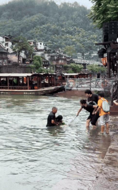 这位老爷爷火了!凤凰古城,一位女游客不小心掉进了河里,整个人被水流冲得只剩下一只手露在水面上挣扎,而就在这时,一名头发花白的老爷爷冲破了人群,连衣服都没脱,直接跳进水里将女子拉了上来,见女子没时候,头也不回的转身离开了! 岸边不少人围观,却没人敢跳下去,女子倒是比较聪明,虽然不会游泳,但知道让自己尽量漂浮在水中,也没有胡乱的大喊,而正当路人犹豫该如何解救时,一名老人直接跳进水里游了过去 河水其实比看着急。老头游过去时,女子已经在下沉,头发像水草似的飘在水里。他一把抓住女子后衣领往岸边带,动作利索得像年轻时在沱江打渔那会儿。岸上小孙子带着哭腔的爷爷声和围观者突然响起的加油声混成一片,倒把河里两人衬得更安静了 等人被救上来时,女孩已经有些脱力,只是呛了几口水,好在人没事。而老爷子拧了拧湿透的衣服,确认女孩平安后,拉着孙子就悄悄走了,没有一句多余的话,没有等人拍照,也没留下名字 从头到尾,老爷子的行为没有半点犹豫。这种场面,没有排练,没有剧本,也没有手机直播的光环。他不是专业救援人员,也不是特意想出风头,他就是凭着一股子本能和良心,把人从鬼门关拉了回来 有网友说:希望被救的姑娘能早日找到老爷爷,当面说声谢谢;更希望这份勇敢能被更多人看见、传承 确实如此,我觉得最打动人的,不只是他救了人,更是他救人之后的那份淡然。如今,很多人做事都想着发个视频发个朋友圈,而他,却只是悄悄地做了,然后又悄悄地离开。他没说话,但他做的事,比任何语言都更有分量 也许我们记不住他的名字,也不知道他是谁,但他的这一跳,会让很多人记很久。而那个被救的女孩,这辈子也忘不了这个白发老爷爷的身影。这样的人,值得我们敬