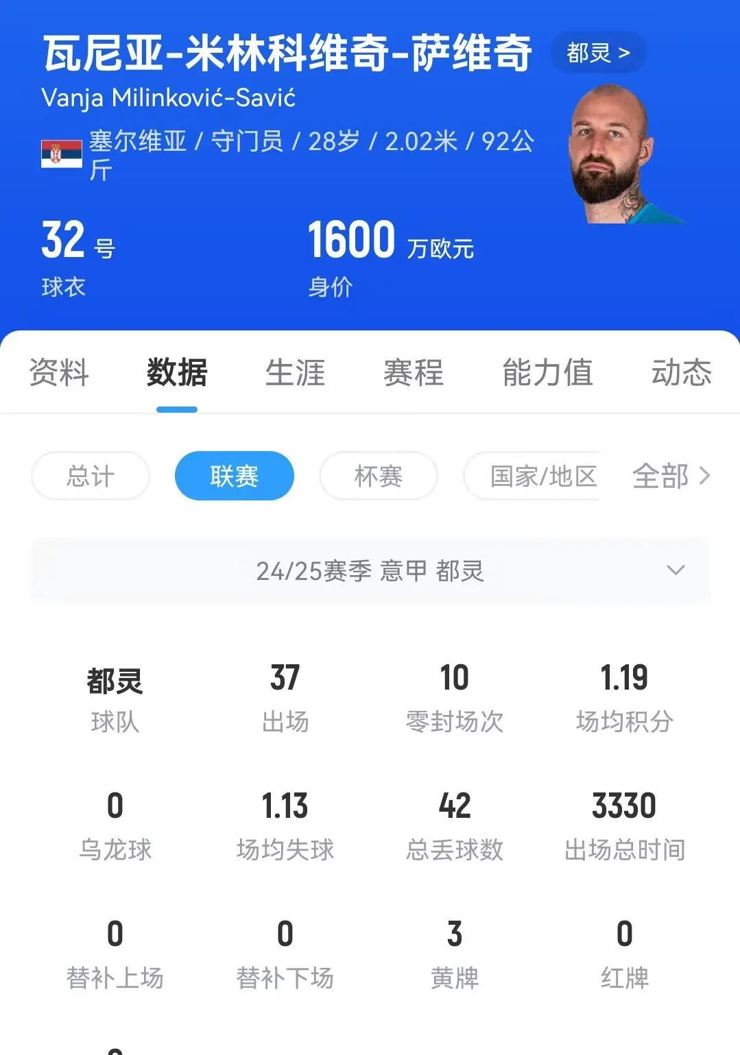Here we go!一声吼呀! 意甲卫冕冠军又补强了…… 罗马诺:那不勒斯签2.02米门将瓦尼亚,转会费2100万欧,将分四年支付! 28岁的瓦尼亚-米林科维奇-萨维奇上赛季为都灵在意甲出场37次,贡献10次零封,德转估价1600万欧元。