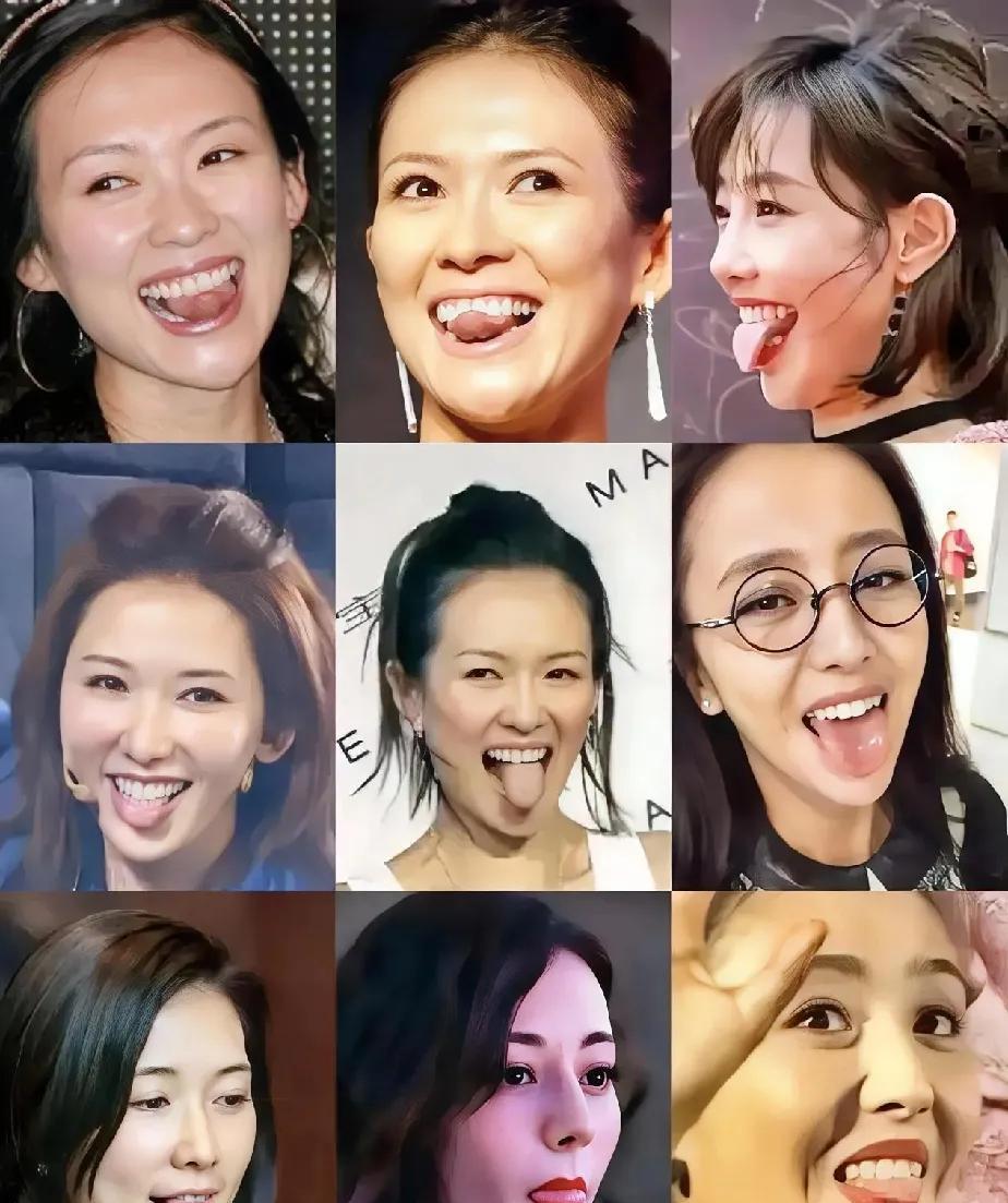 众女星吐舌, 诱惑的是子怡, 不好看的是百合, 青涩的是热巴, 不过这么多人都不如素人章泽天,俏皮可爱,清纯自然。
