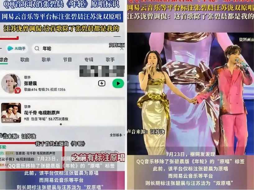 事情闹到现在,大象音乐老板直接发文,事已至此,《年轮》回家。同一天,QQ音乐也取消张碧晨《年轮》原唱标识。张碧晨工作室也只能停止辩论,告别《年轮》的演唱权。