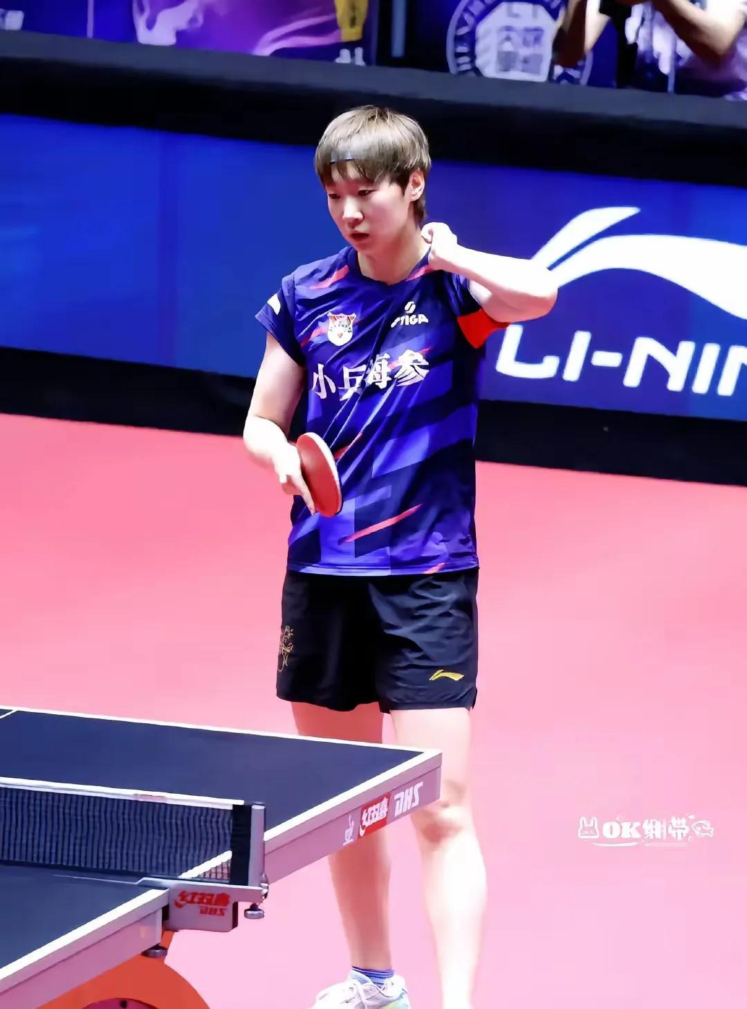 7月25日王曼昱戴着发带打乒超首秀,3比1赢了覃予萱,直接给山东鲁能扳平了比分,